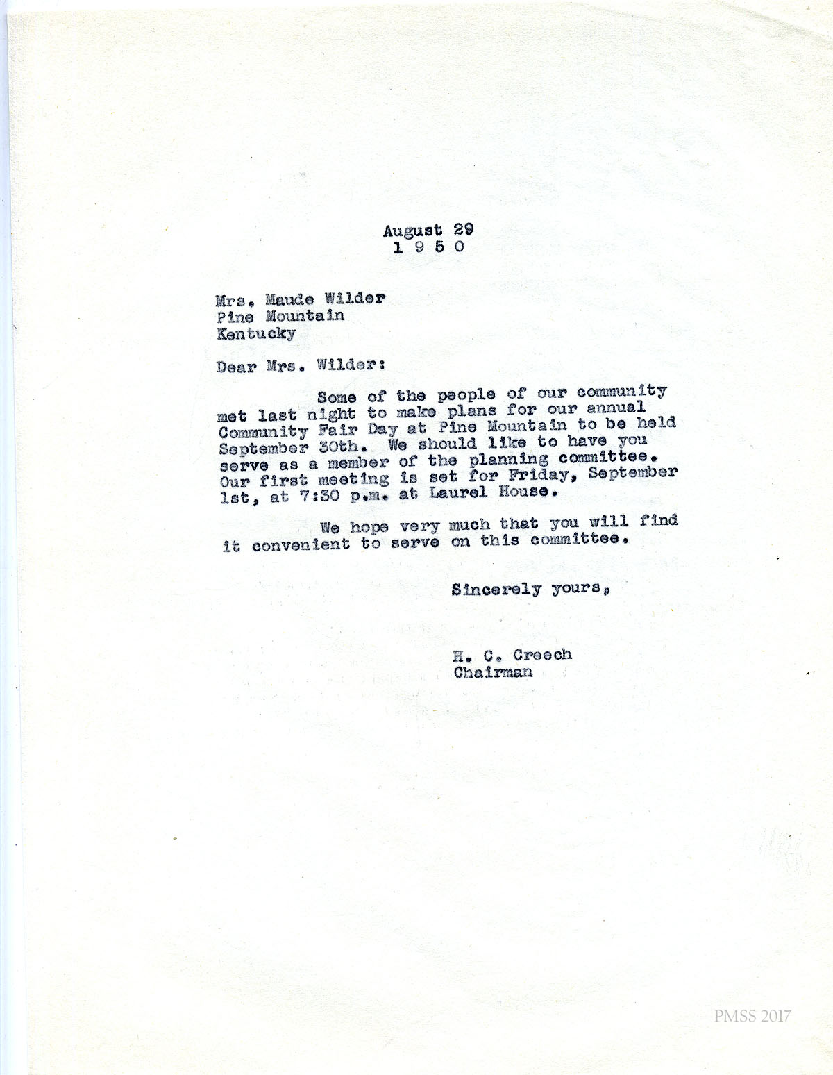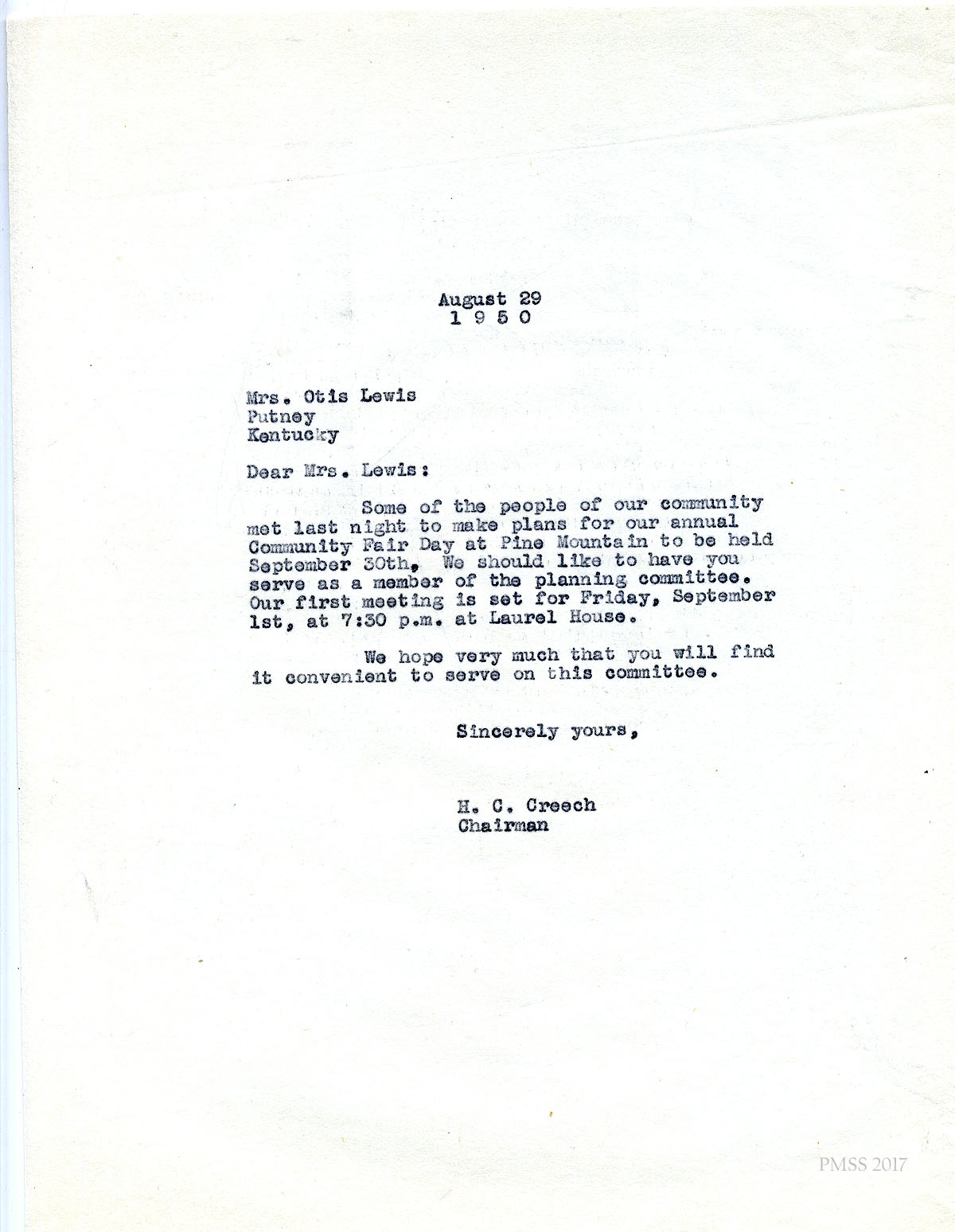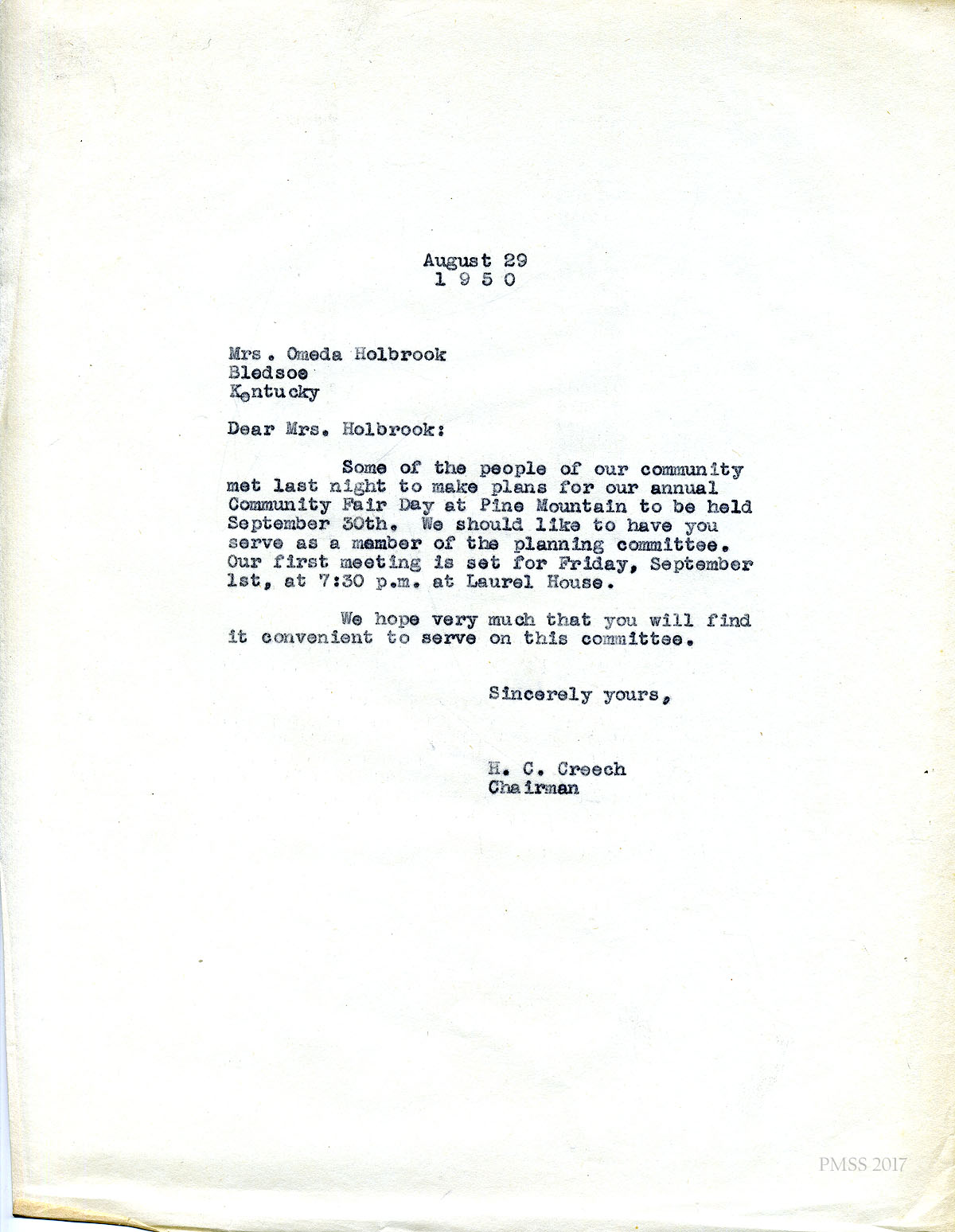 - Henry Creech to Arny [Arnie] Hall1950 Fair Day