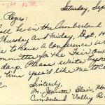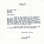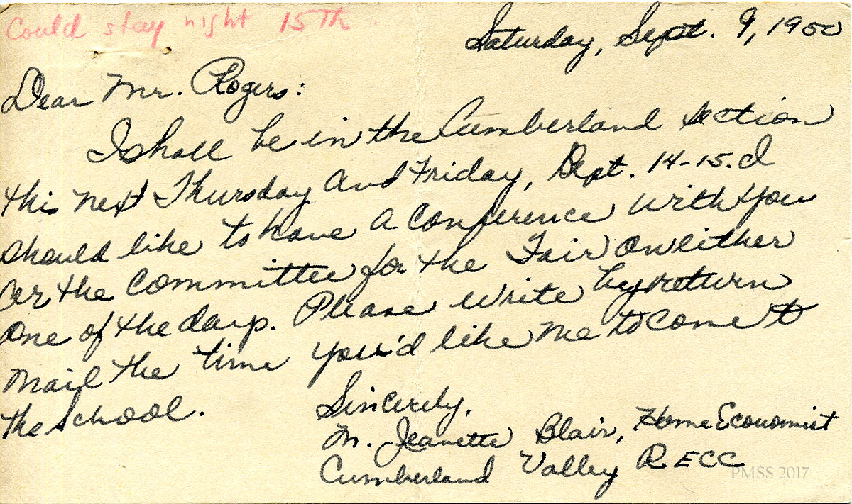 The following images of items related to the 1950 Community Fair Day represent planning, advertisement, staffing and sign-up lists, the Fair Day program, an exhibit list and correspondence. They give an indication of the people involved and the planning and coordination that were necessary for a successful Fair Day.
