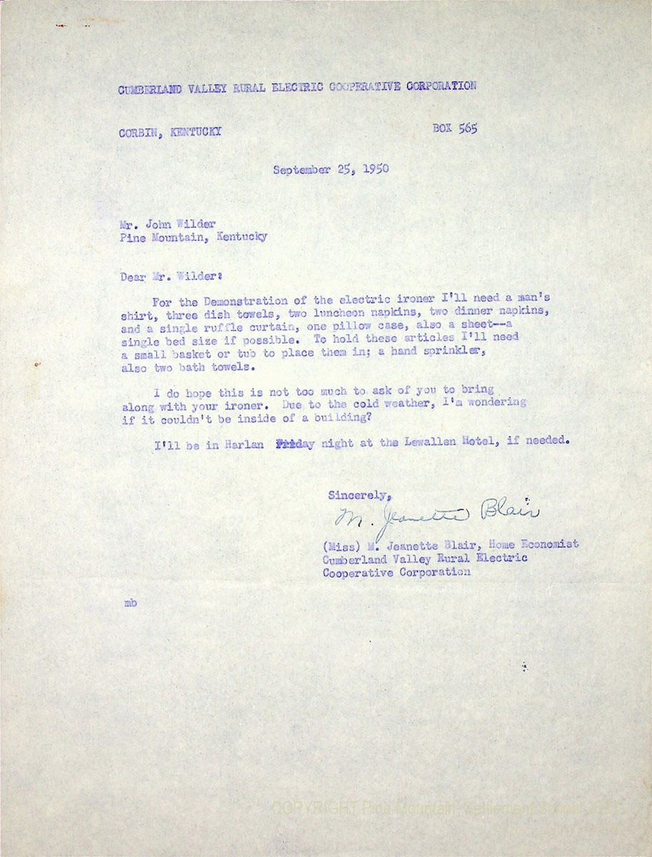 - Janette Blair Demonstration – Cumberland Valley Rural Electric Cooperative – 1950 Fair Day