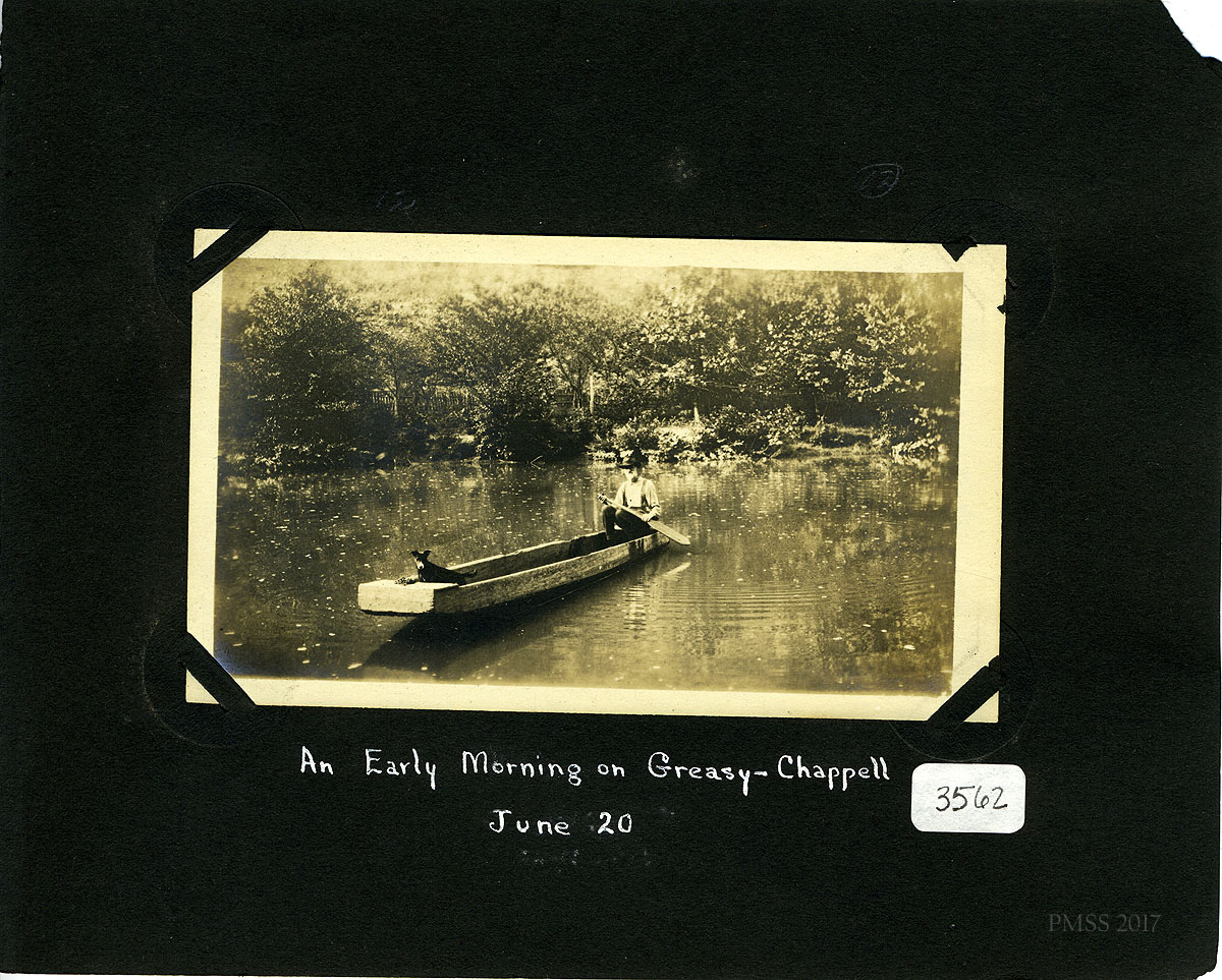 The color shift of the emulsion on the prints is considerable and is the result of age and storage. No attempt was made to alter the original color of the photographs as seen in the full page scans of the album. The uniformity of the color shift throughout the album suggests that storage has been less than optimum through the years, but also gives the album a rich nostalgic aura. The single images seen below have been modified and the color shifts have largely been removed.