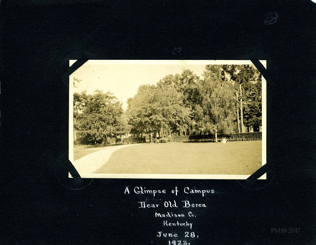 I must explain this album. Katherine True was Dean of Girls in the old Academy of Berea College (in which I taught my first 4 years here.) She retired to Pleasant Hill, Tenn., some years ago, and died this last year. Margaret Dizney who also is retired and living in Pleasant Hill, evidently had some responsibility in sorting Kay’s belongings, and so sent me this album. I think it belongs at Pine Mt., and if there is anything of value in it for the mountain room, you will know. These pictures may be duplicated in those already there — but, do whatever you wish with it.