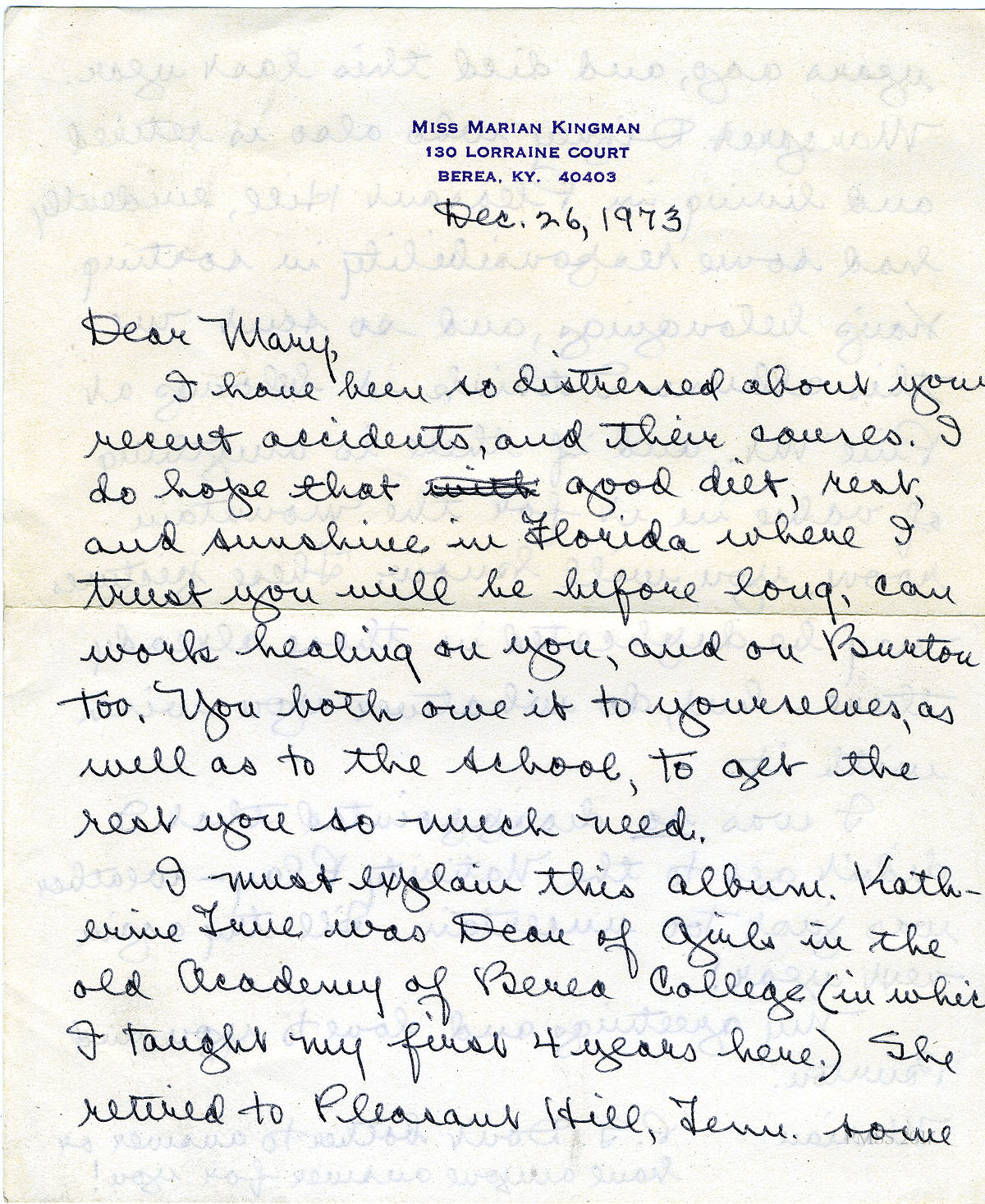 | Relation | Marian Kingman ; Mary Rogers ; Berea College |