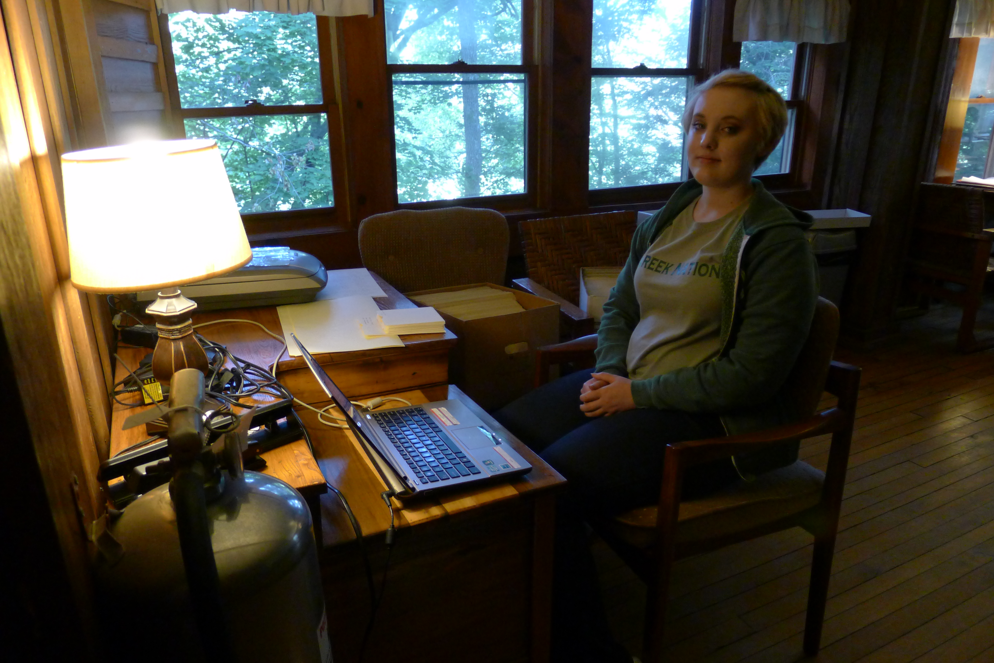 - James Madison University crew hard at work on archives at West Wind. Scanning and data entry. [P1060793.jpg]
