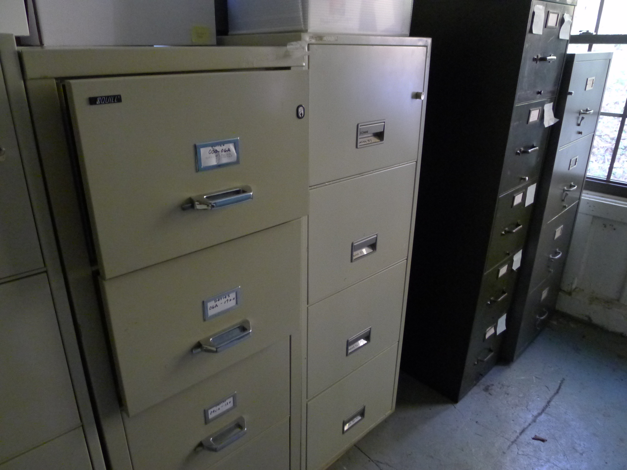 - Temporary placement of three large fire-proof cabinets in reading room. Boys House. Archive/Library room.