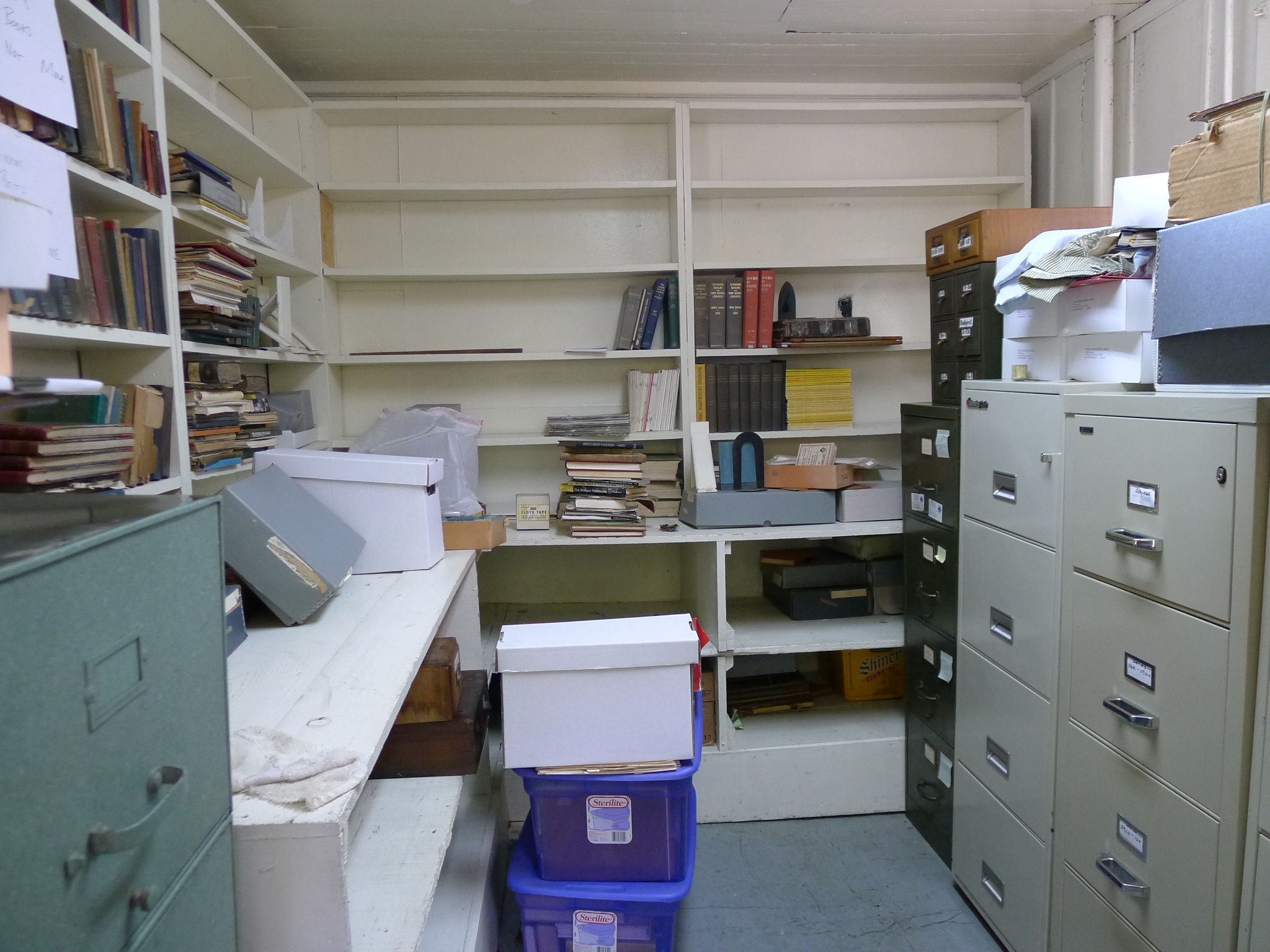 As we move forward, the final steps of bringing the West Wind materials to Boys House will see another surge of construction to secure the collections and add a new HVAC system. The collections from West Wind will fill the new shelving racks. The small annex room — the corner room — will provide additional security and will house selected and unaccessioned collections. Extra shoring-up of the floors in the annex has been completed to accommodate the weight-load of four fire-proof cabinets. We have great expectations for the continued growth of the library and archive.