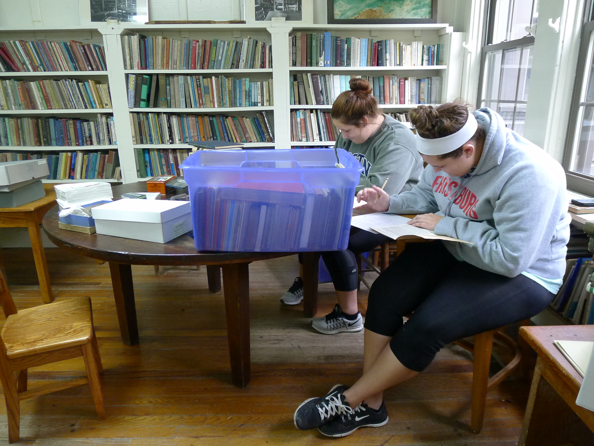 The Archives have greatly benefitted from the help of student labor. in a series of visits, girls from various Alpha Sigma Tau sorority chapters, cleaned, re-housed, labeled and re-foldered collections. Alpha Sigma Tau Sorority students, from Virginia, Michigan, Maryland and other states, came to the campus as part of their service projects. Over the course of several years, the girls gave hours of their time to a variety of critical maintenance and inventory tasks. Their generous support gave the collections the vital processing that allowed the archive to bounce back from the brink of despair (or was it the archivist’s brink of despair?).