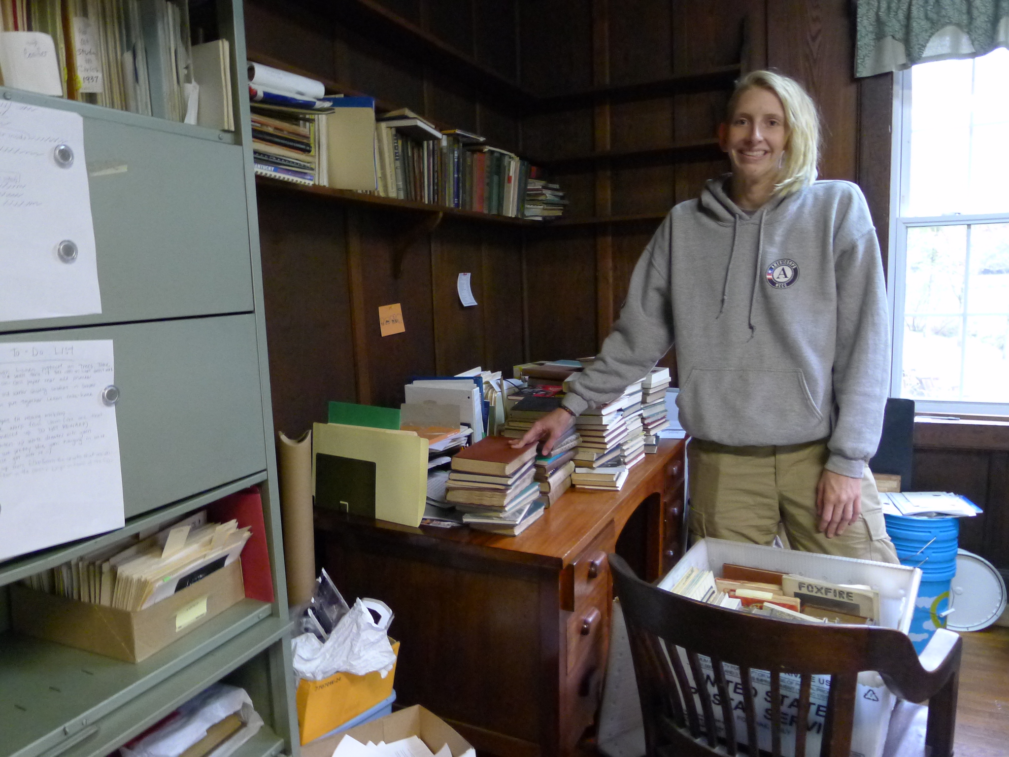 TAGS: Pine Mountain Settlement School Archive Turns a Corner; Archive at PMSS Turns a Corner; PMSS Collections; Pine Mountain Archive; Boys House; National Historic Landmark; built environment; Appalachian Regional Commission (ARC) Grant; funding matches; West Wind; Office; Berea College SIA microform project; student labor; Settlement Institutions of Appalachia (SIA); records disposition; record management; Appalachian Challenge Academy; community library; children’s library; Mary Rogers; carpenters; Mary Gould Davis; Pine Mountain Room; HVAC systems; Geoff Marietta; Nancy Adams; donors; Creech Family; Lewis Family; Nolan Family; Board of Trustees; Karen Hudson; Ann Cummins Smith; Cathi and Carolyn Castle; volunteers;