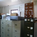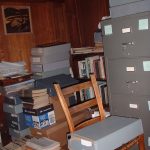 In the Office building, the storage and preservation problems were even more challenging. Stored in a small cramped space that also housed two staff members, there were 6 file cabinets (4 fire-proof) that were slowly re-shaping the flooring with their weight. A small closet housed music and dance collections that are probably a gold-mine for folklorists. On top of file cabinets were boxes of textiles, framed pictures and over-sized objects. In the file cabinets were a myriad of duplicates of material held at West Wind. Every cranny and nook was filled with a combination of precious and duplicate collections. There was no security. The small office had constant traffic in and out.