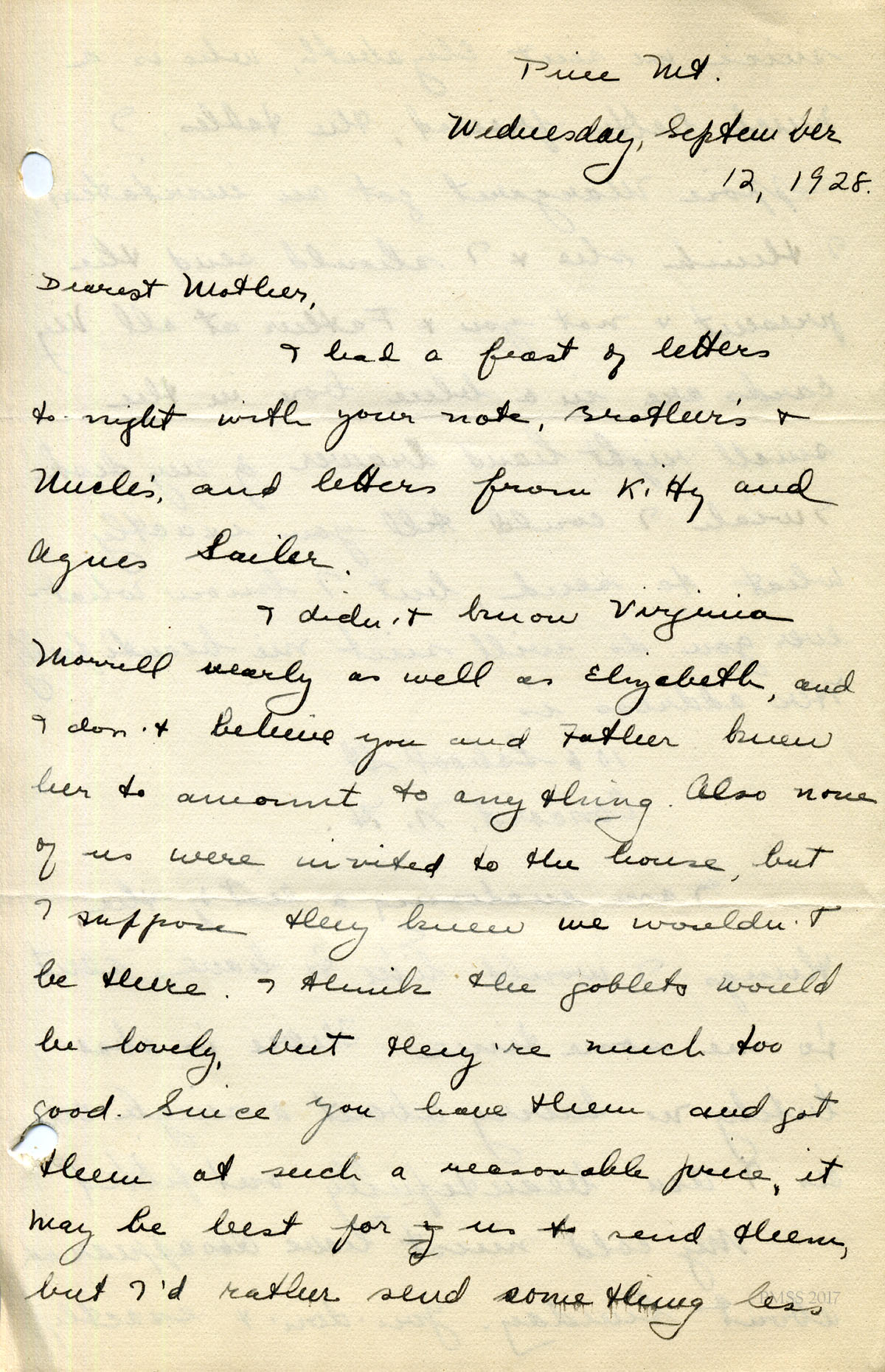 HARRIET CRUTCHFIELD JOURNAL GUIDE 1928 for summaries of her 1928 correspondence.