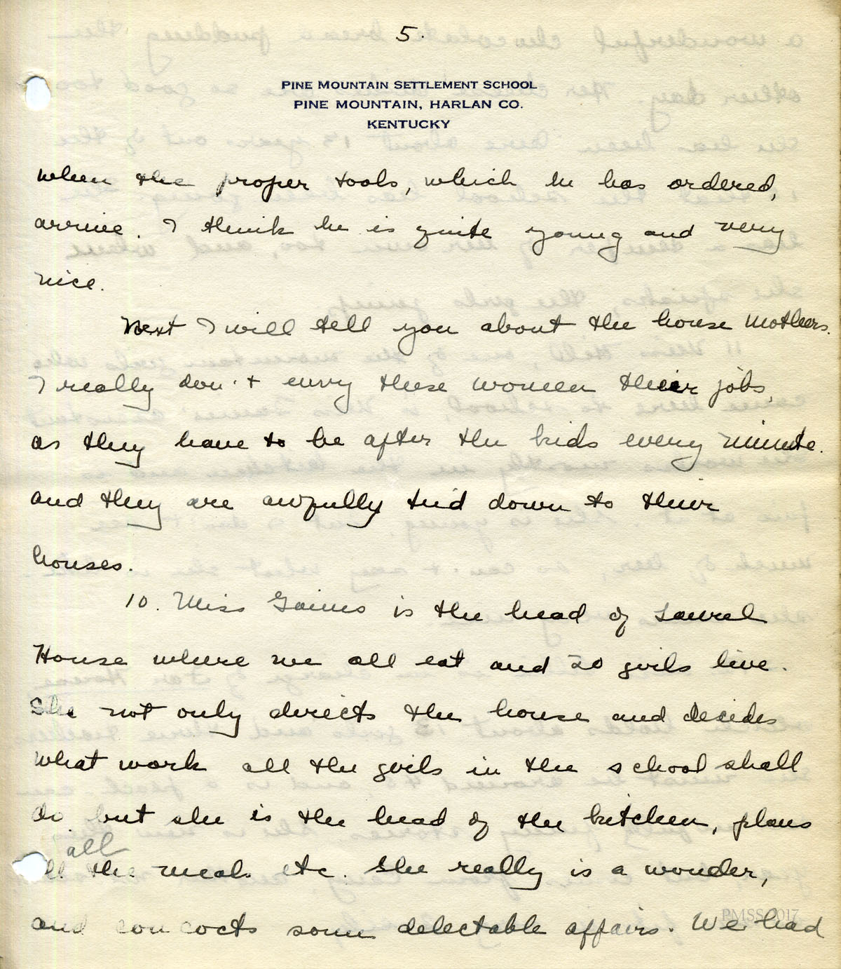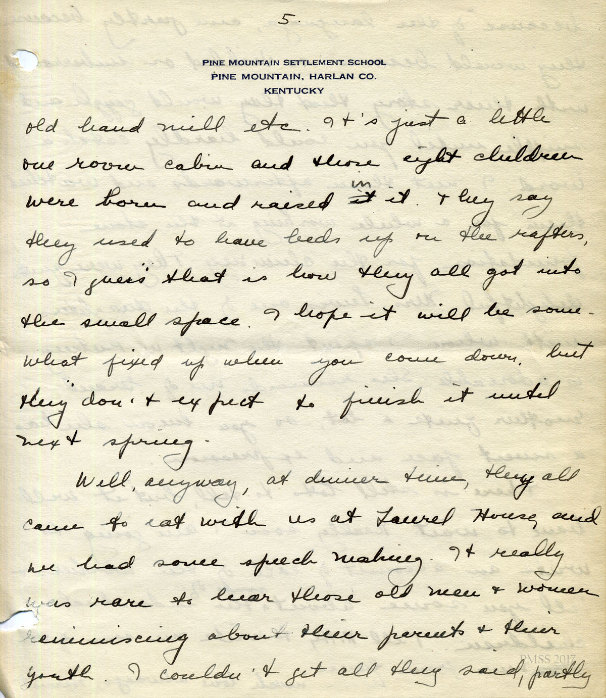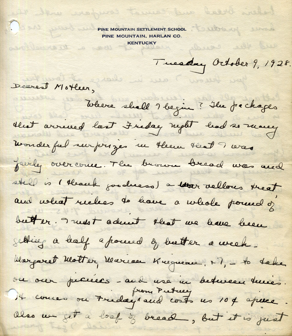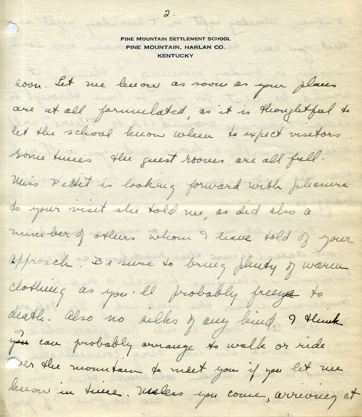 In the summer of 2017 John Orndorff, Harriet Crutchfield’s son, visited Pine Mountain Settlement School and brought along the following “journal” comprised of letters his mother, Harriet, wrote to family and friends during her time as a teacher at Pine Mountain Settlement School. Over 200 pages of Harriet’s observations, reflections, and experiences fill the small black binder. Her son noted when talking with the staff at Pine Mountain that he could think of no better place for the journal to be appreciated. His generosity and his astute assessment of the journal’s importance to Pine Mountain Settlement are profoundly appreciated.