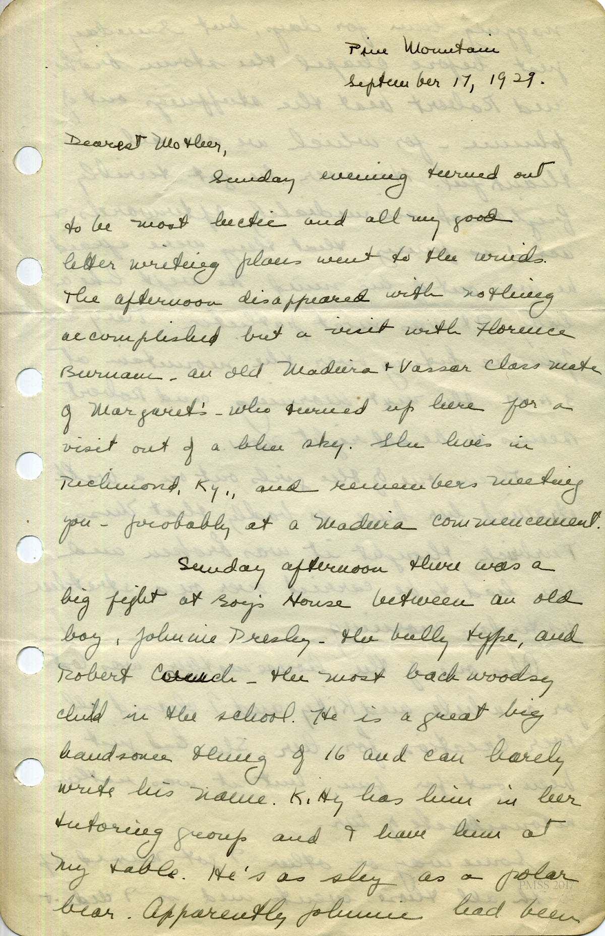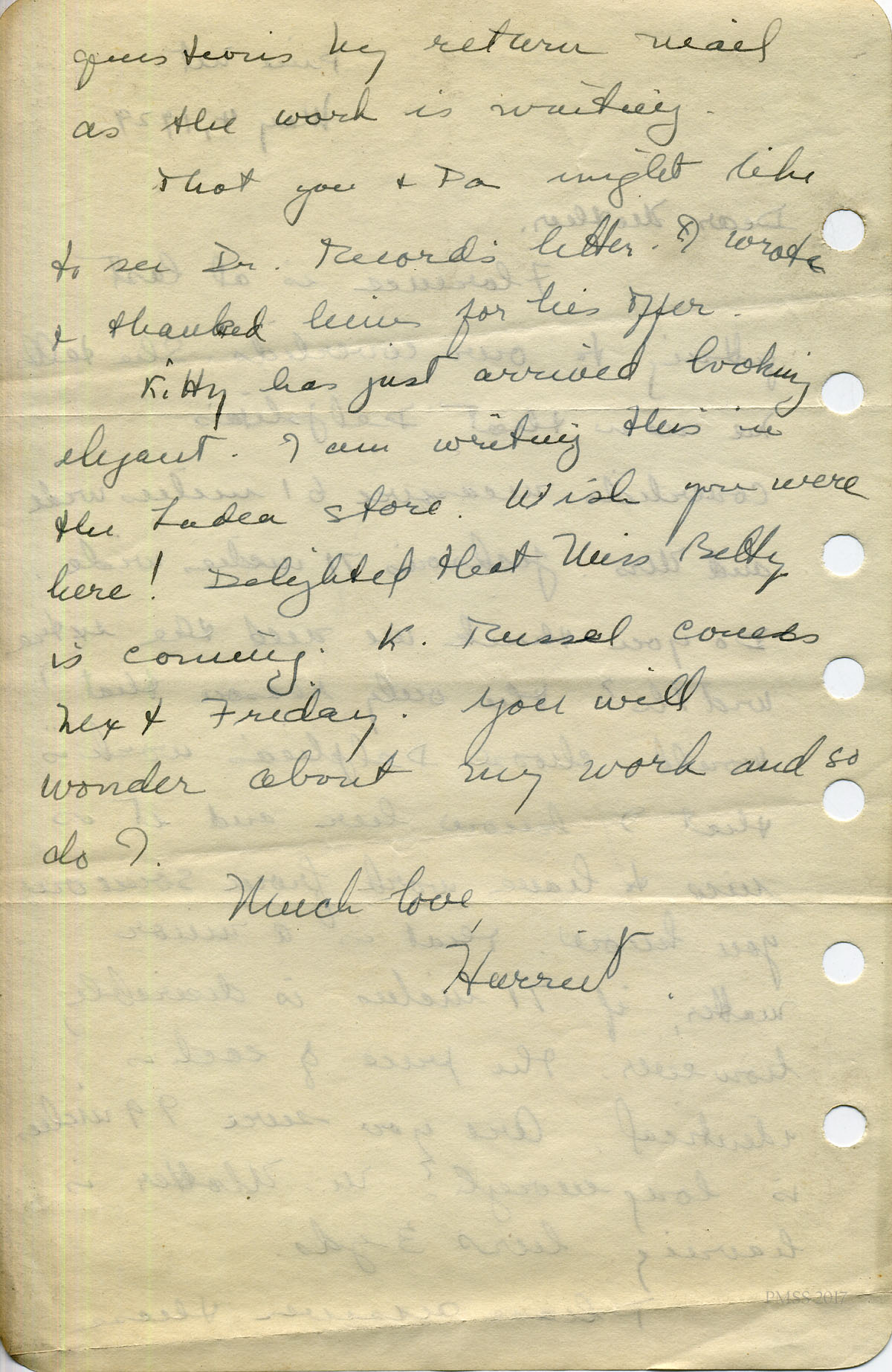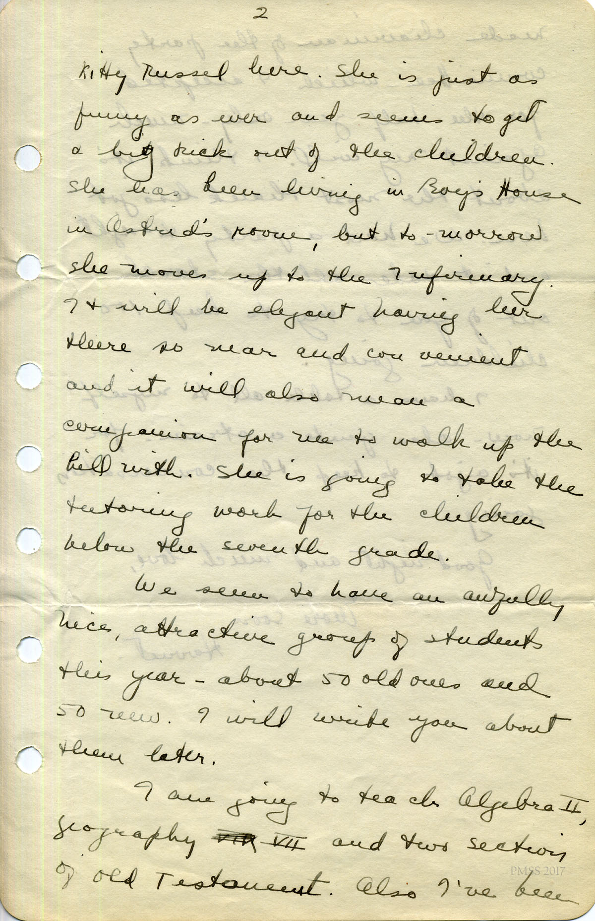 For IMAGES of her correspondence while at PMSS, see:
