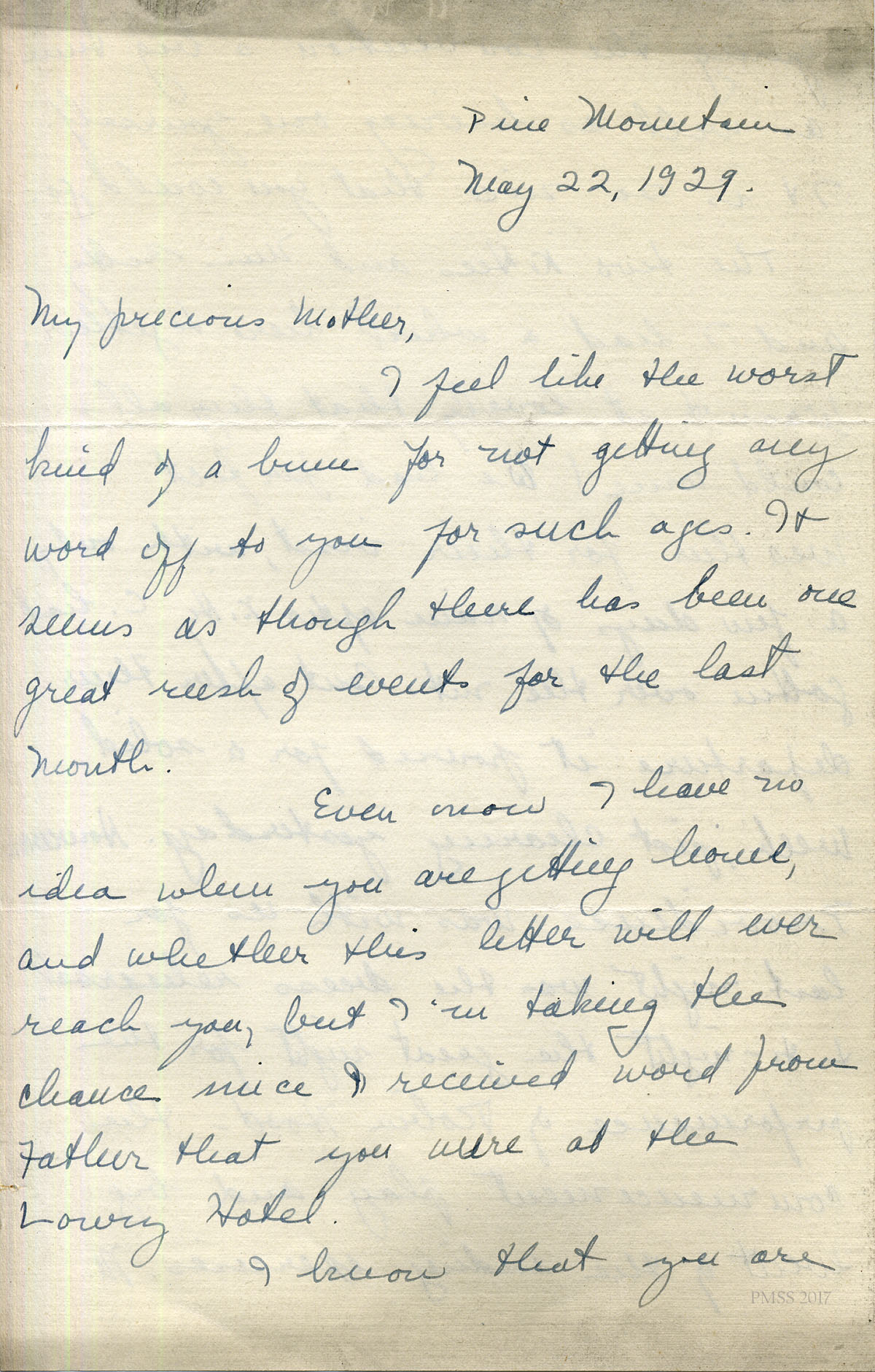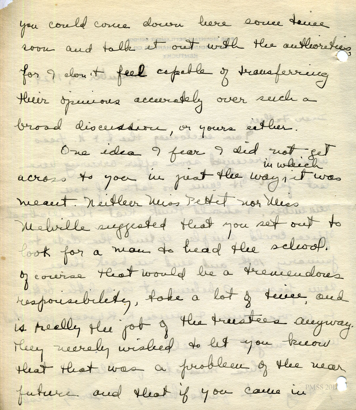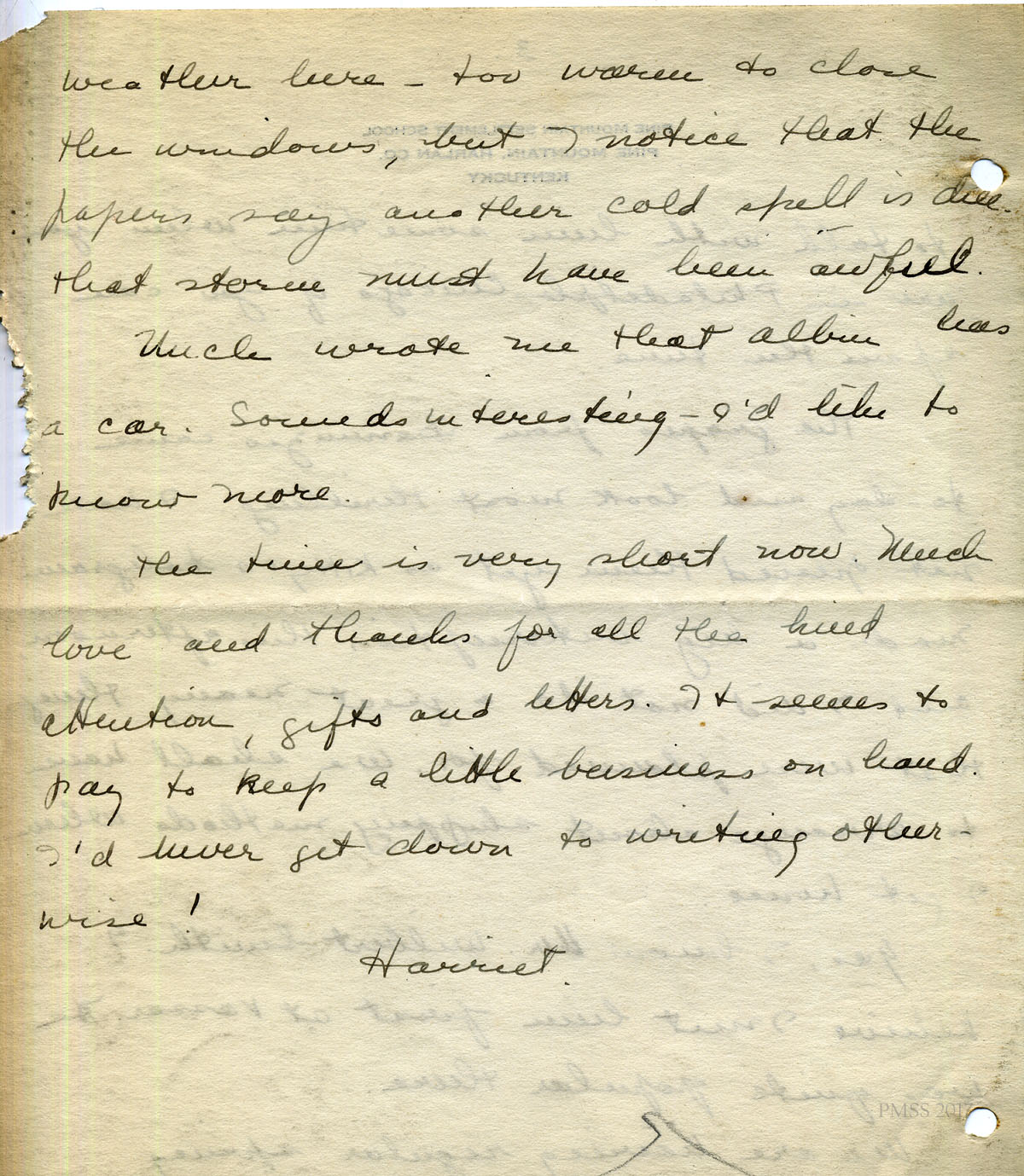 For IMAGES of her correspondence while at PMSS, see: