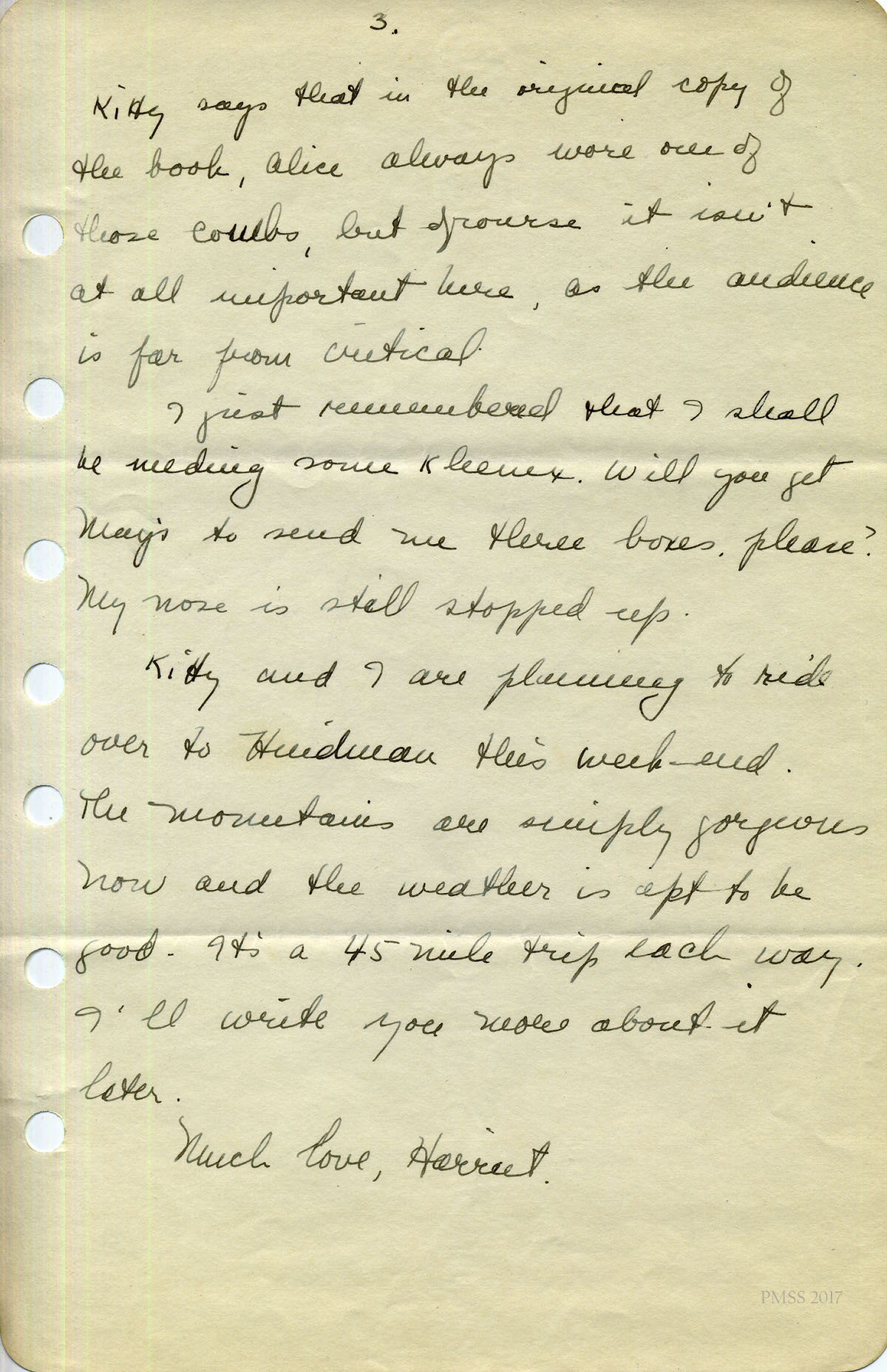 HARRIET CRUTCHFIELD CORRESPONDENCE AFTER PMSS