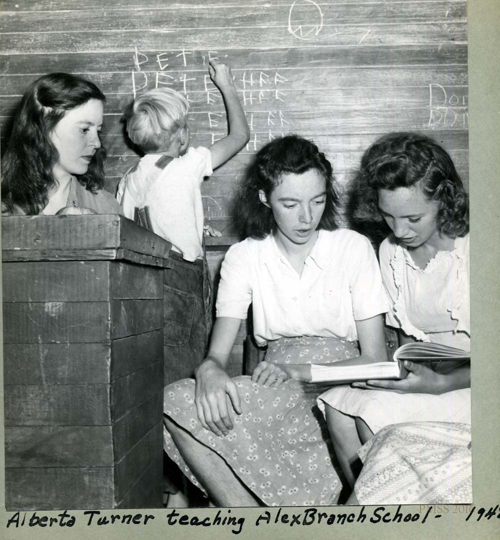 - “Alberta Turner teaching Alex Branch School – 1948(?)” Three children and teacher. [nace_II_album_025.jpg]