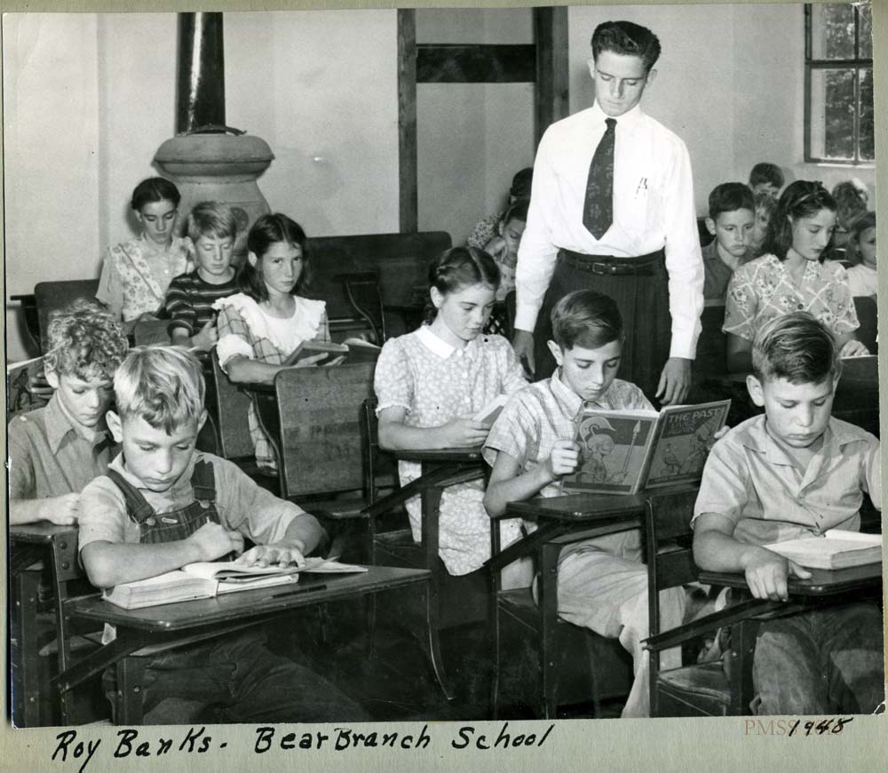 - “Roy Banks – Bear Branch School 1948.” Children at desks and teacher. [nace_II_album_027.jpg]