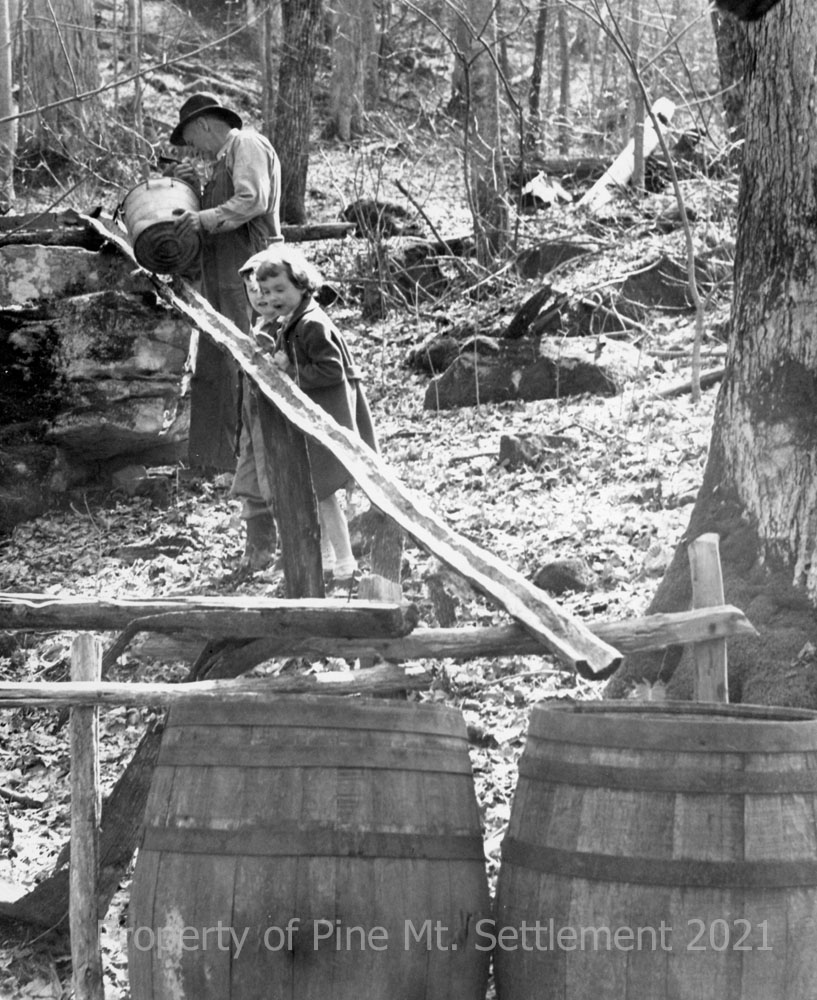 The Creech family who lived near the Settlement School had the skill of harvesting this natural sweetener and passed along their knowledge to Pine Mountain Settlement School staff…. [It is likely] that maple syrup was a gift to various workers and also graced the table for entertaining guests from the School….
