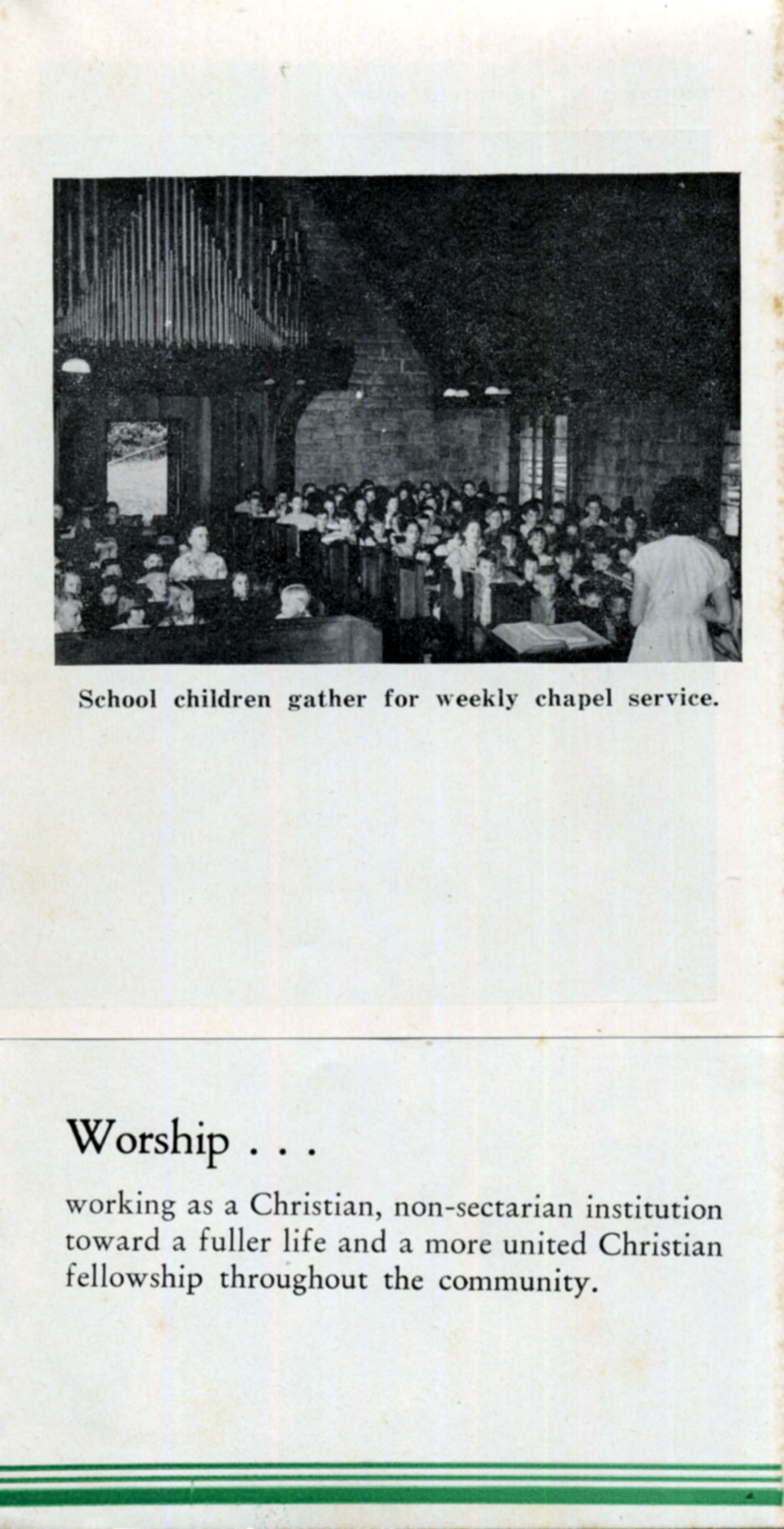 TAGS: PMSS publications, 1950 brochure, publicity flier, PMSS as a community center and public grade school