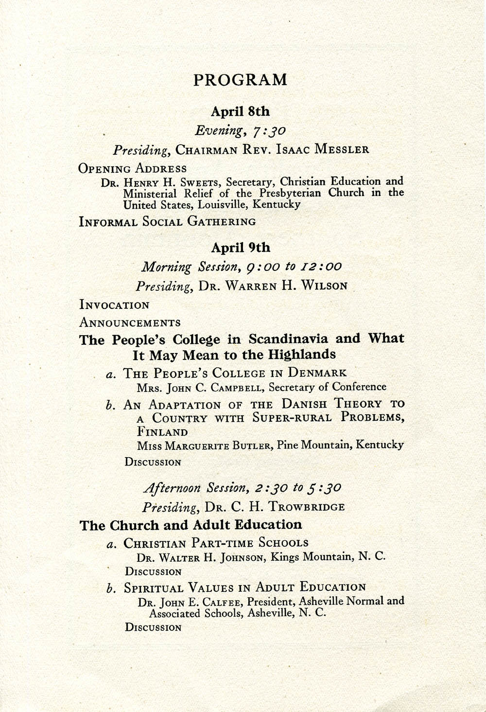 (See The Life and Work of John C, Campbell by Olive Dame Campbell.)