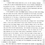 Well that ended my little jaunt. But I think this winter will see more of them. I asked Mr. Morris if I might have the afternoons off and do my afternoon’s work in the evening. He refused that “pine-blank” as the folks say, but suggested that I take any afternoon I wanted off, at any time. Of course I couldn’t do that — it just wouldn’t be possible — but I decided to take Friday regularly. So now I’m letting it be known that [indecipherable] country people may expect me to come “a-traipsin’” on Friday — that… [truncated?]