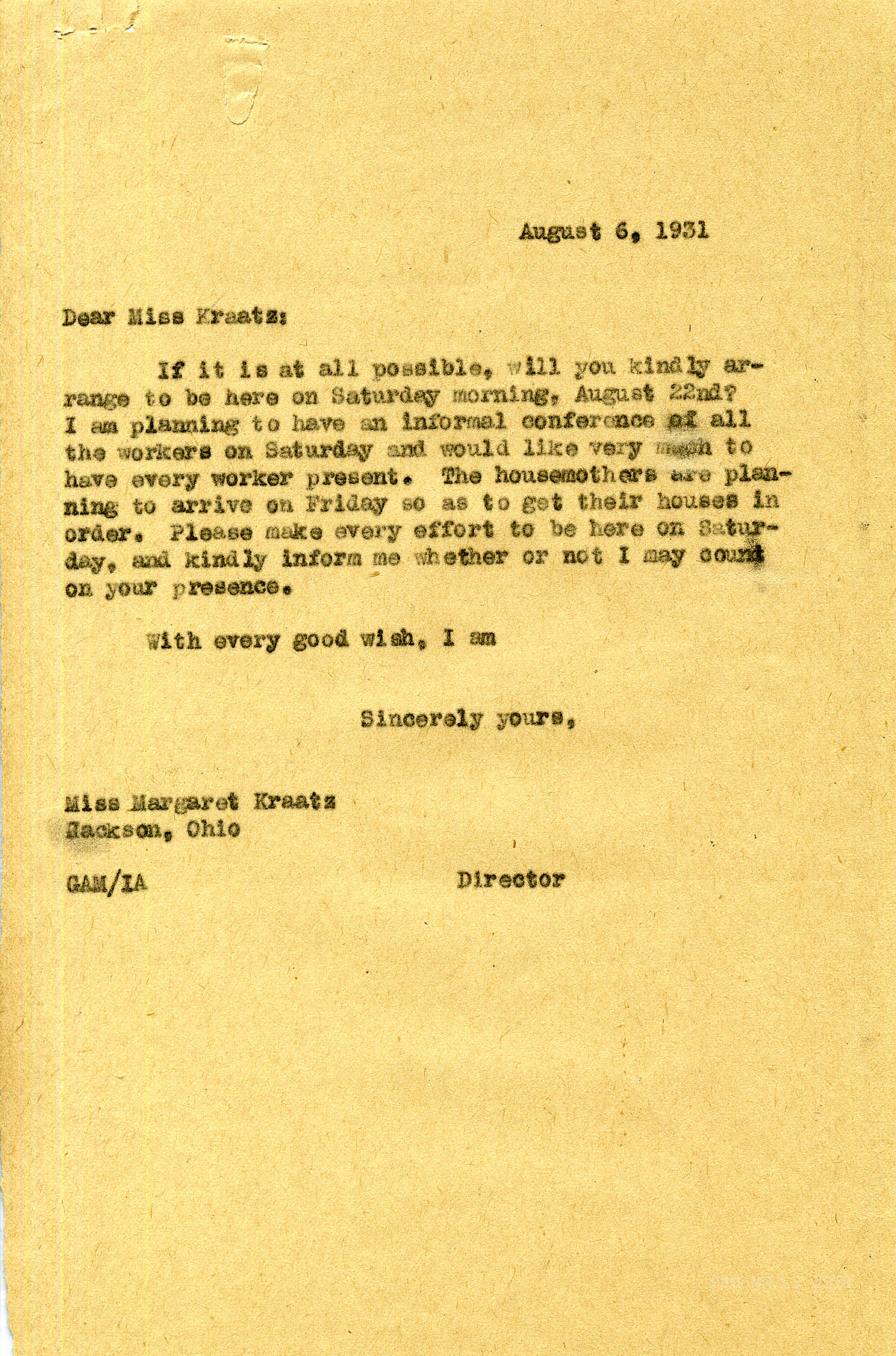 MARGARET KRAATZ WRIGHT Correspondence, 1930-1932