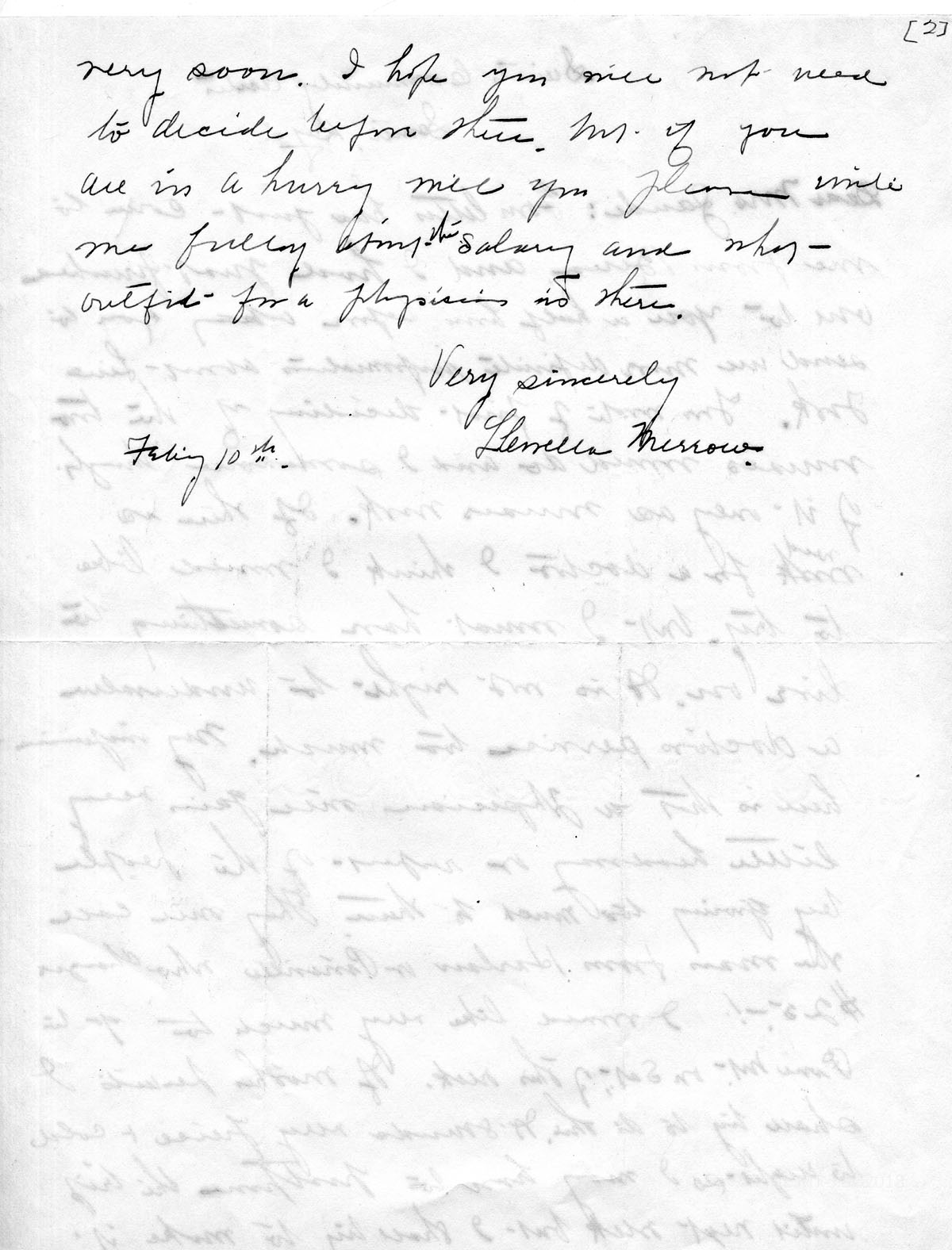 [merrow_llewella_corr_017a.jpg] Handwritten letter, page 2 of 2.