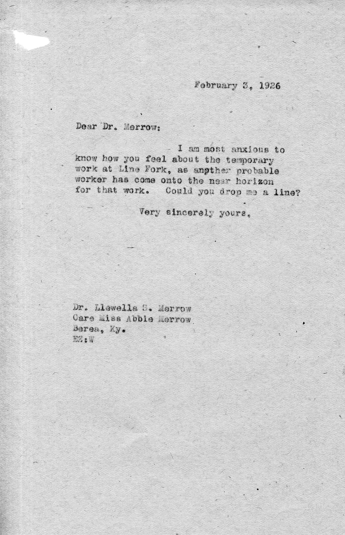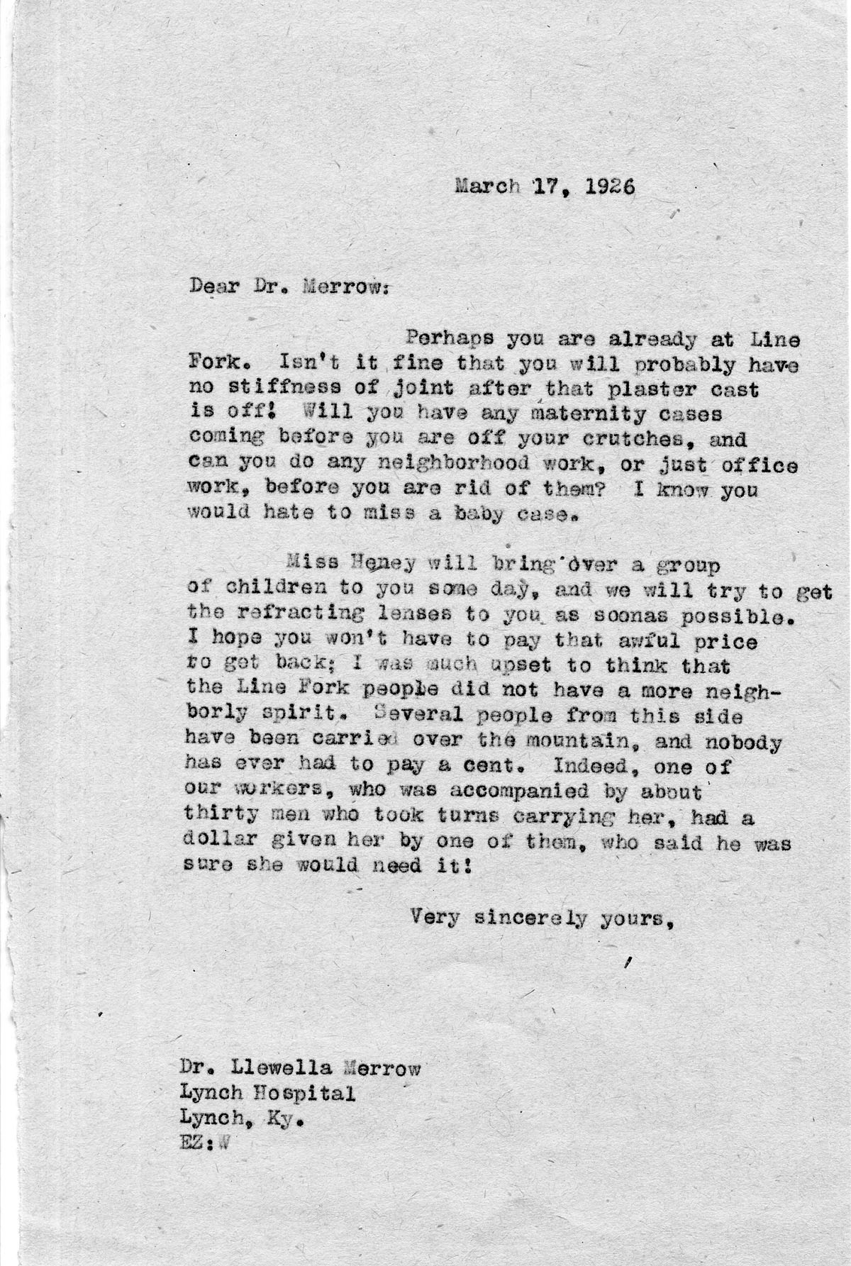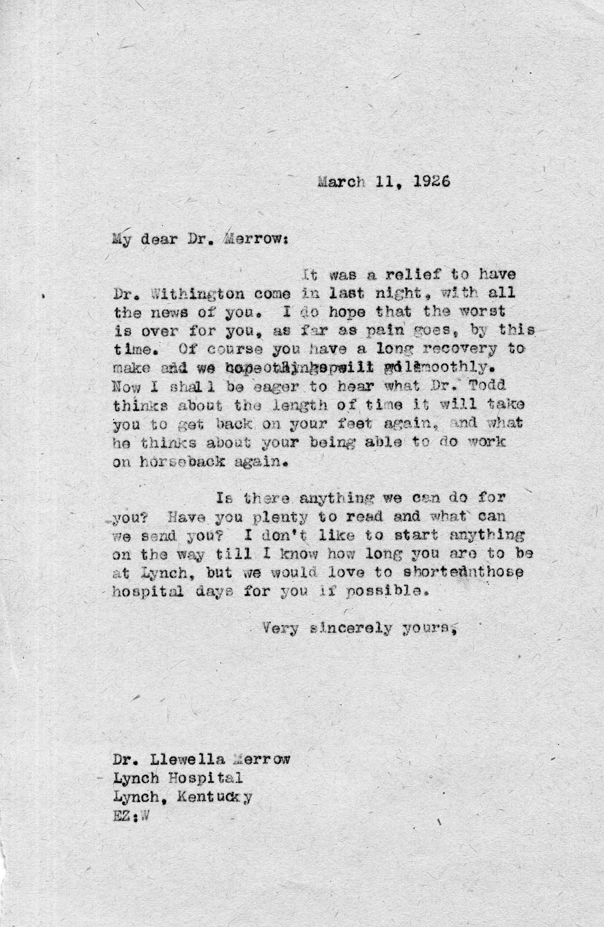 Dr. LLEWELLA MERROW Correspondence I, 1926