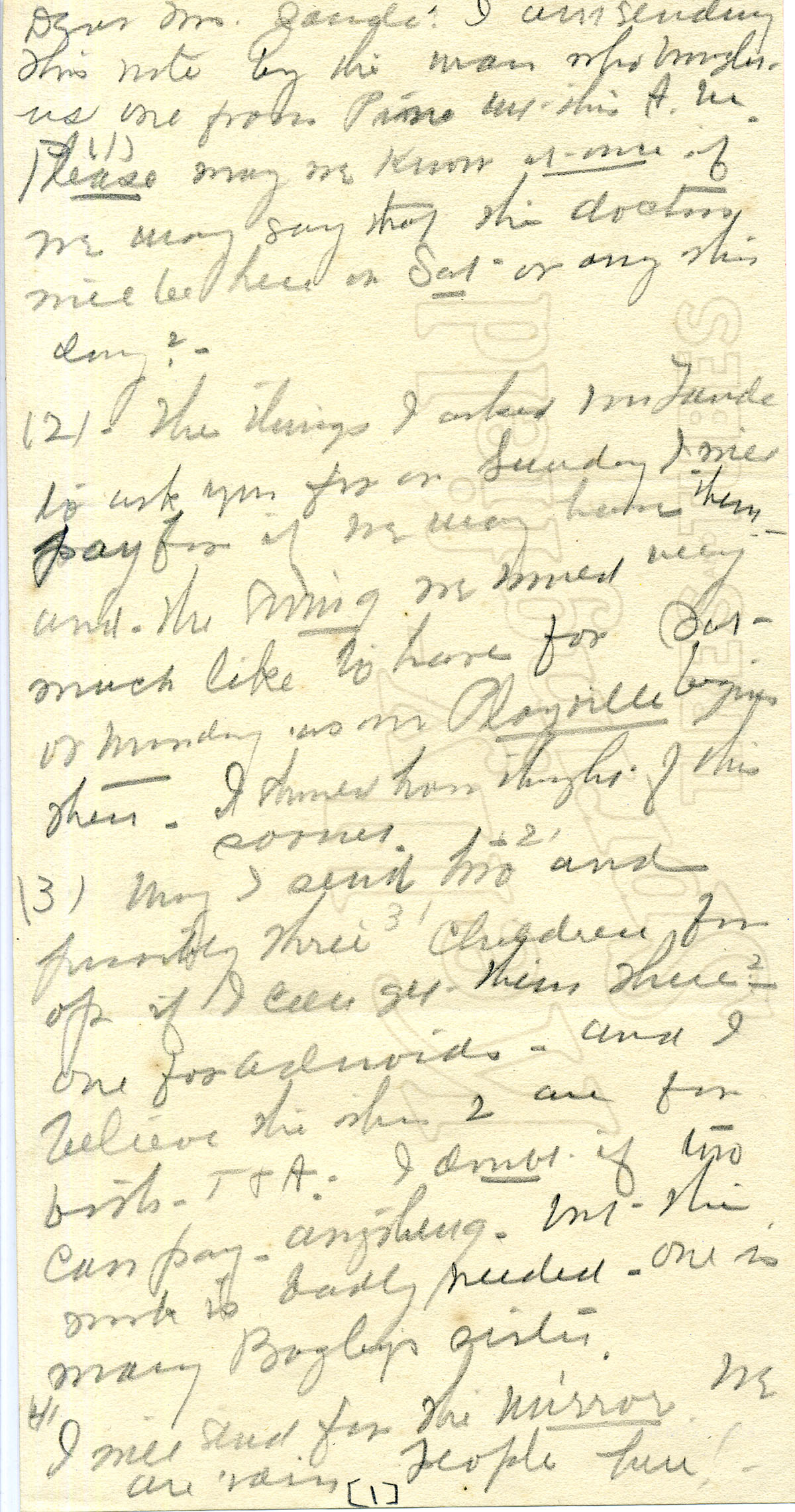 We will have to send you word later about your two tonsils cases. We must limit our cases to twenty, and are still waiting to hear about some of our children. I wish you would send me all information about them, – who they are and in just what circumstances.