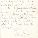 I have written a little note to Dr. Todd, Wasn’t it nice that he was so very considerate? Yes, I heard about your trip home and think the swapping of a wagon for two guns was most interesting. You can really write an epic on that whole trip, it seems to me. I have had only good news of Queen’s [horse] behavior, — that she behaved as she always does in time of need, and showed her good senses and intelligence. Miss Butler, her owner, is trying to sell her. You must ask anyone who need you to come with a horse for you.
