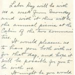 [stapleton_ida_r_1925_114.jpg] August 29, 1936. Two-page handwritten letter to Mr. and Mrs. Morris from Robert Stapleton on “The Cabin” stationery. Stapleton invites them to the annual Labor Day picnic at the Cabin for the two communities; suggests that they bring their movie camera. [115] Page 2. Hopes Miss [Alice] Cobb will be at the picnic.