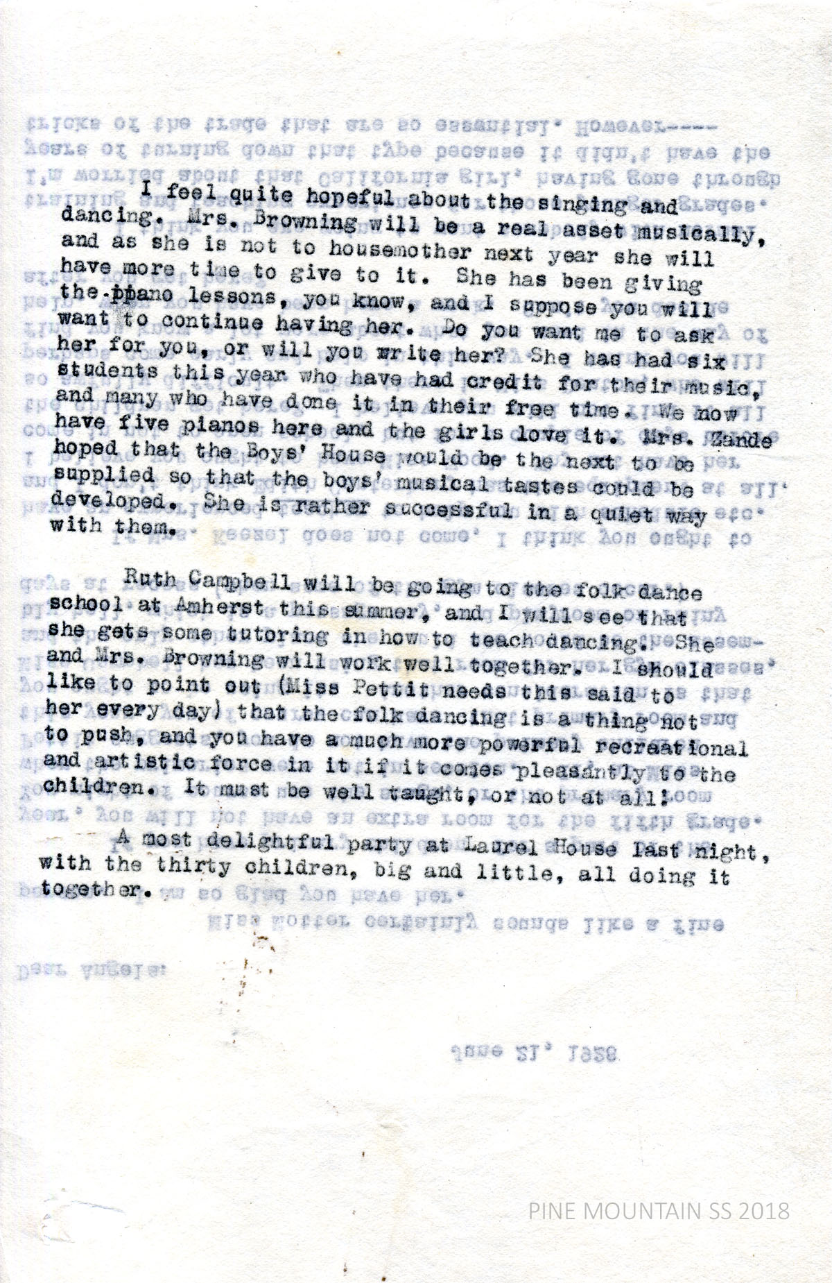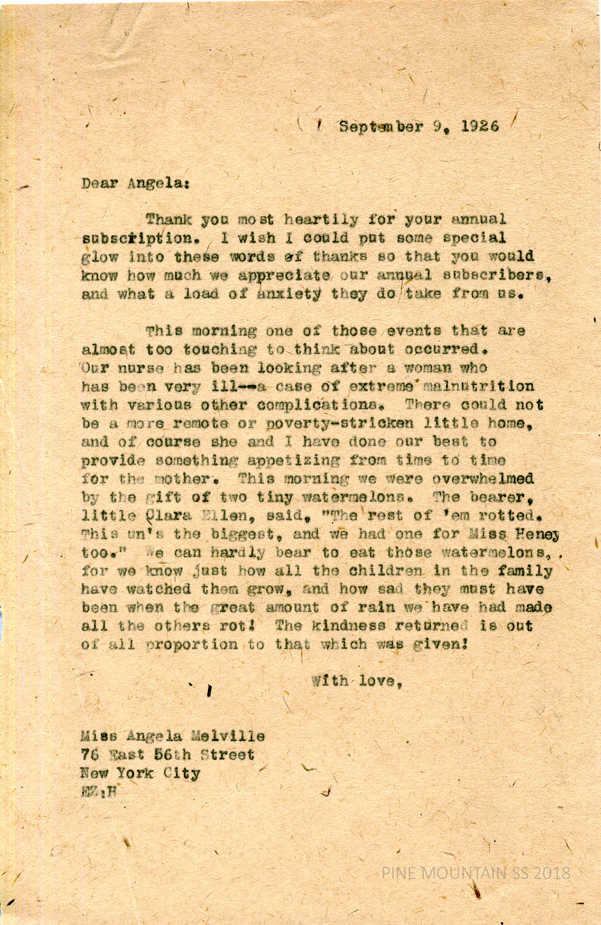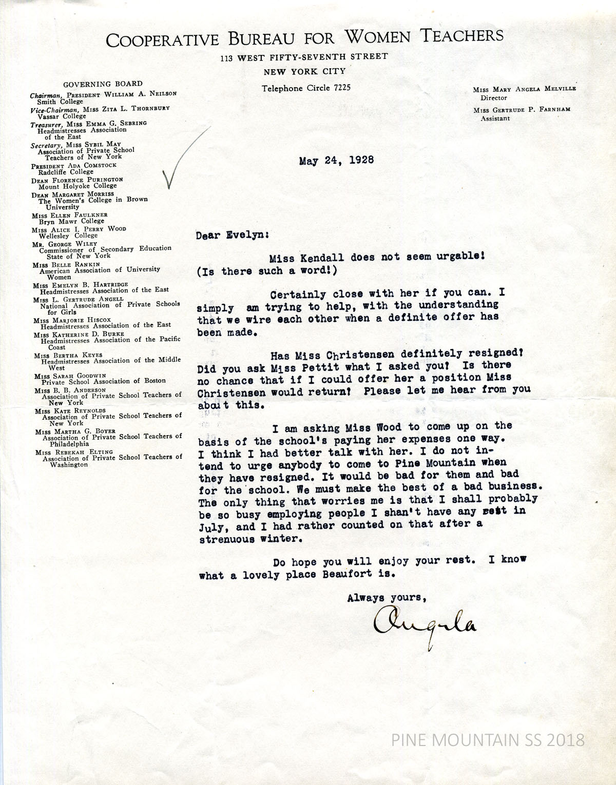 The later letters in this group indicate Melville’s plans to return to Pine Mountain due to the death of the School’s Co-Director Ethel de Long Zande in 1928. Melville was re-hired to serve as Associate Director of the Pine Mountain School for two years with full charge of the academic work, the office and the fiscal promotion of the School, all of which had been under the care of the late Mrs. Zande. Miss Katherine Pettit was to continue as Director.
