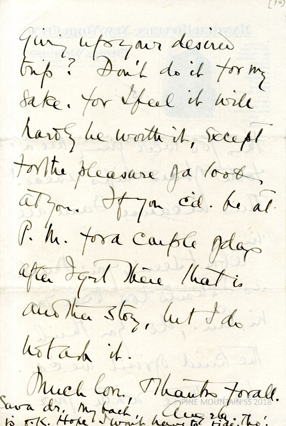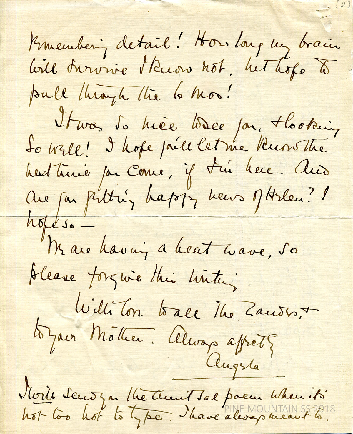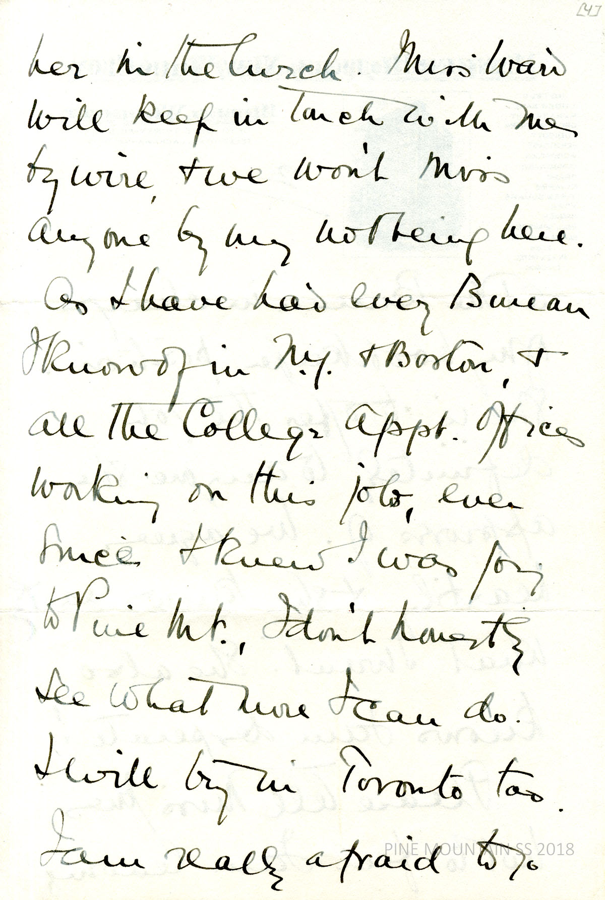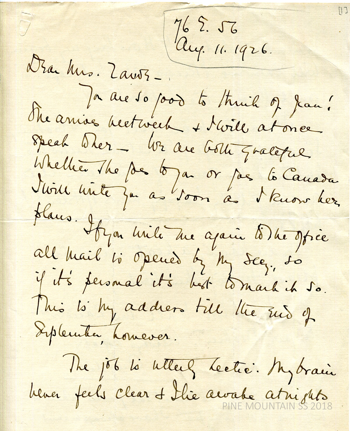 The later letters in this group indicate Melville’s plans to return to Pine Mountain due to the death of the School’s Co-Director Ethel de Long Zande in 1928. Melville was re-hired to serve as Associate Director of the Pine Mountain School for two years with full charge of the academic work, the office and the fiscal promotion of the School, all of which had been under the care of the late Mrs. Zande. Miss Katherine Pettit was to continue as Director.