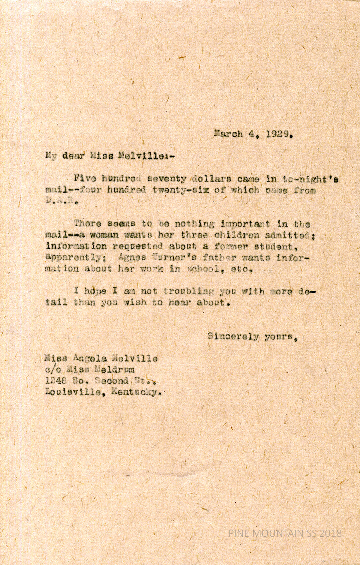 [melville_corr_051.jpg] Unsigned to Melville in Louisville, Kentucky, March 4, 1929. Update on received mail, including donations, requests to be admitted to School and for information.