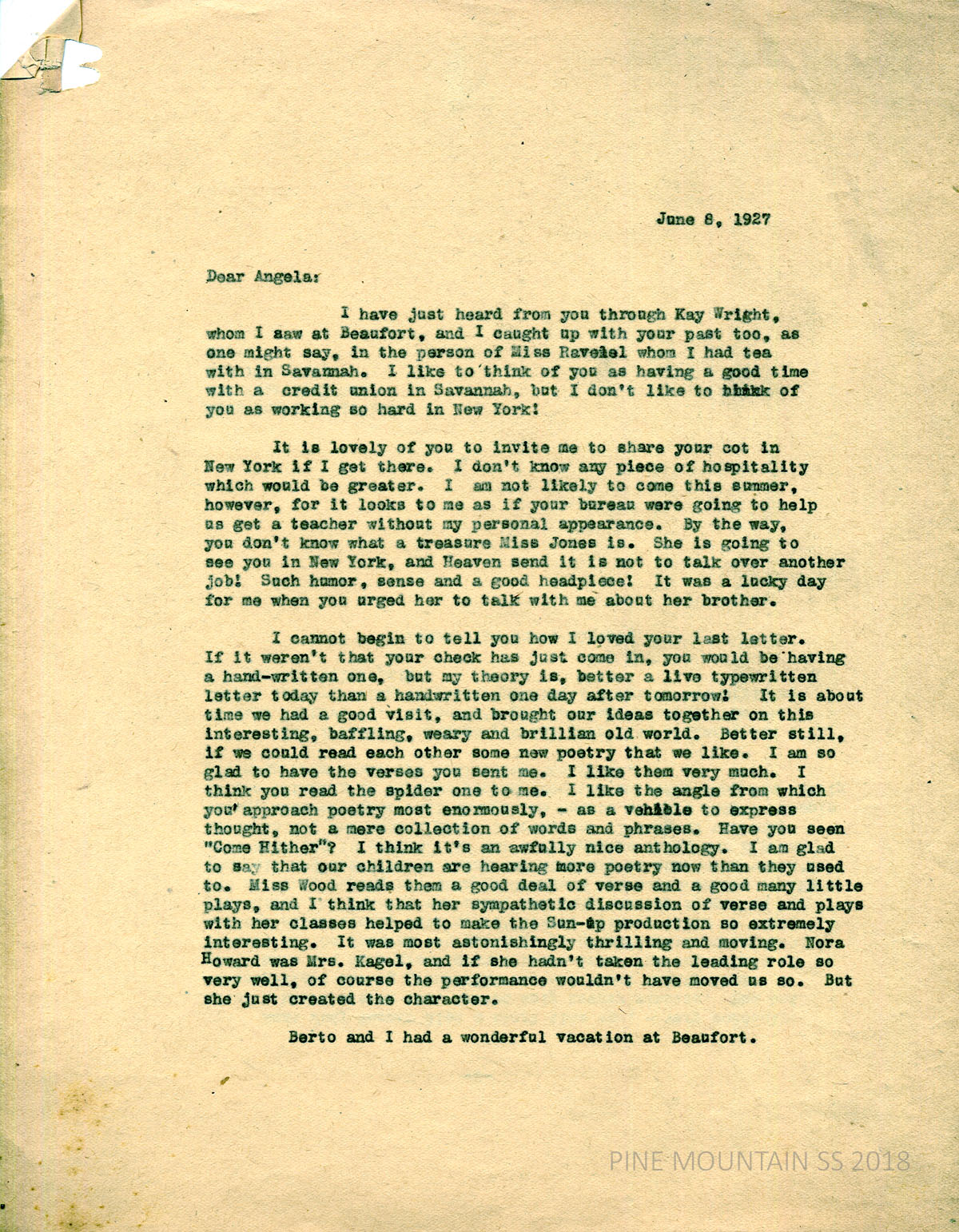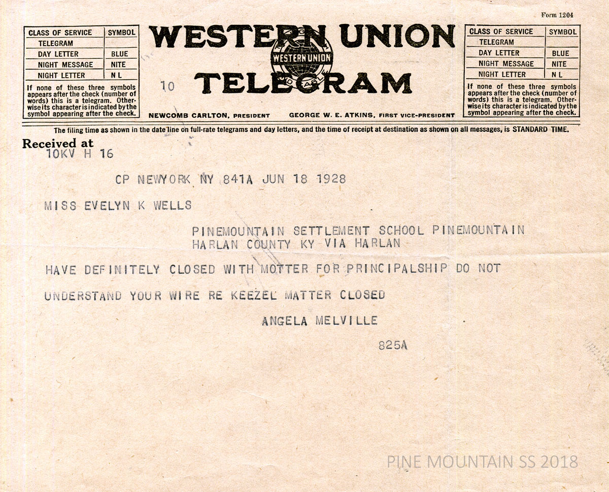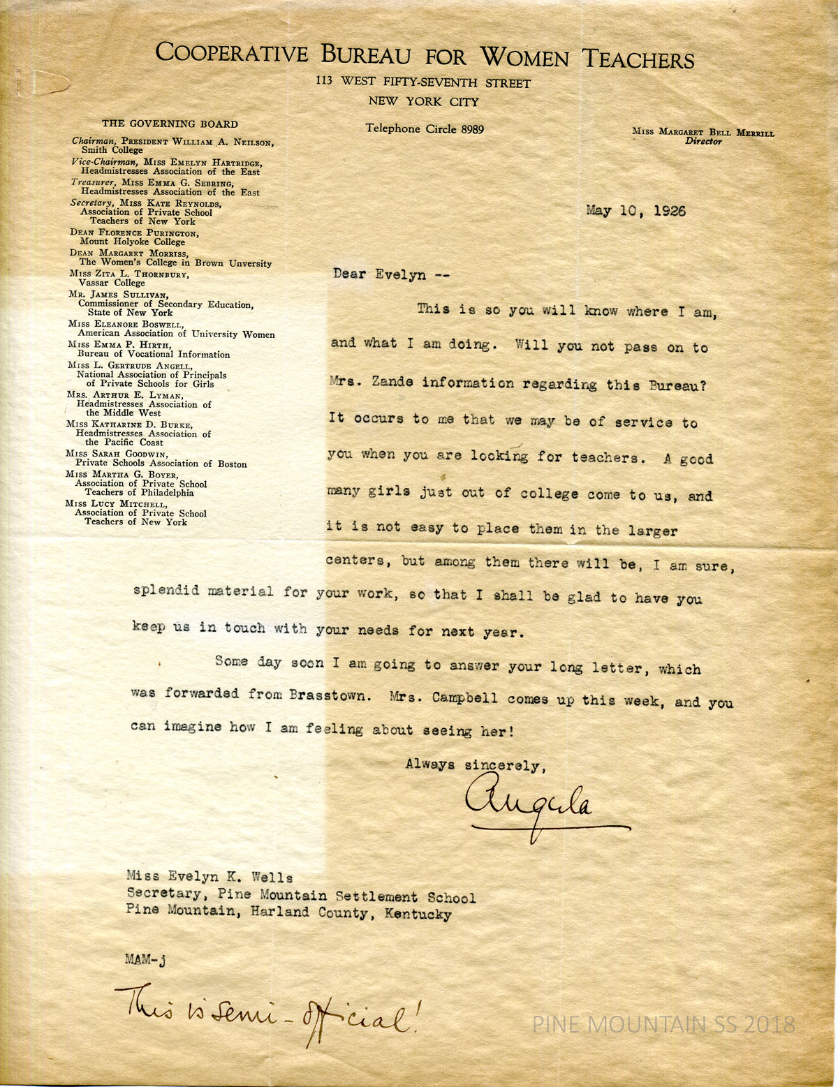 ANGELA MELVILLE Correspondence 1925-1929 are letters primarily between Melville and Evelyn K. Wells. During the period of this correspondence, Angela Melville was the director of the Cooperative Bureau for Women Teachers in New York City. Evelyn K. Wells was a secretary at the Pine Mountain Settlement School and had been since 1916. (She became the School’s interim director in 1931.) Their paths crossed when Melville was employed as a PMSS office organizer and fundraiser from 1916 to 1920.