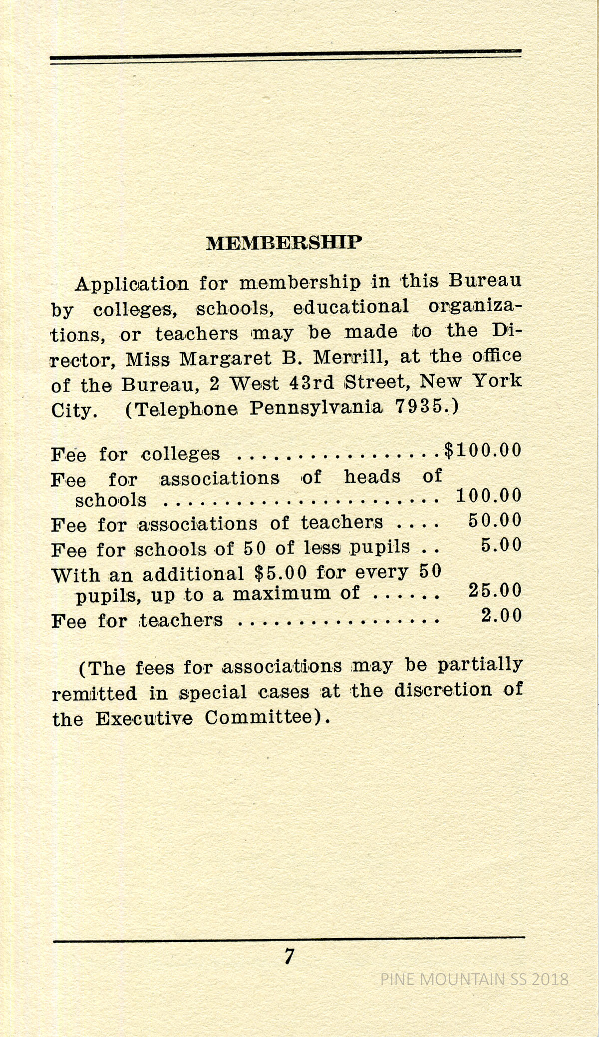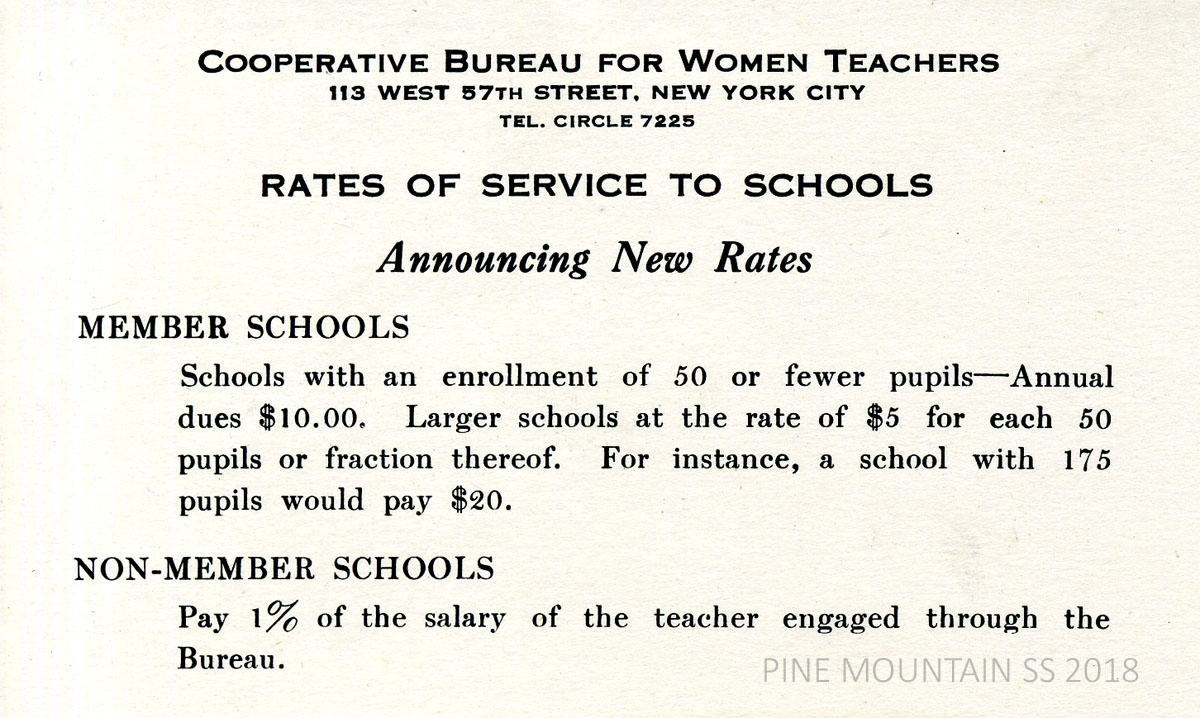 [melville_corr_039.jpg] Printed list of “Rates of Service to Schools” from the Cooperative Bureau for Women Teachers, NYC.