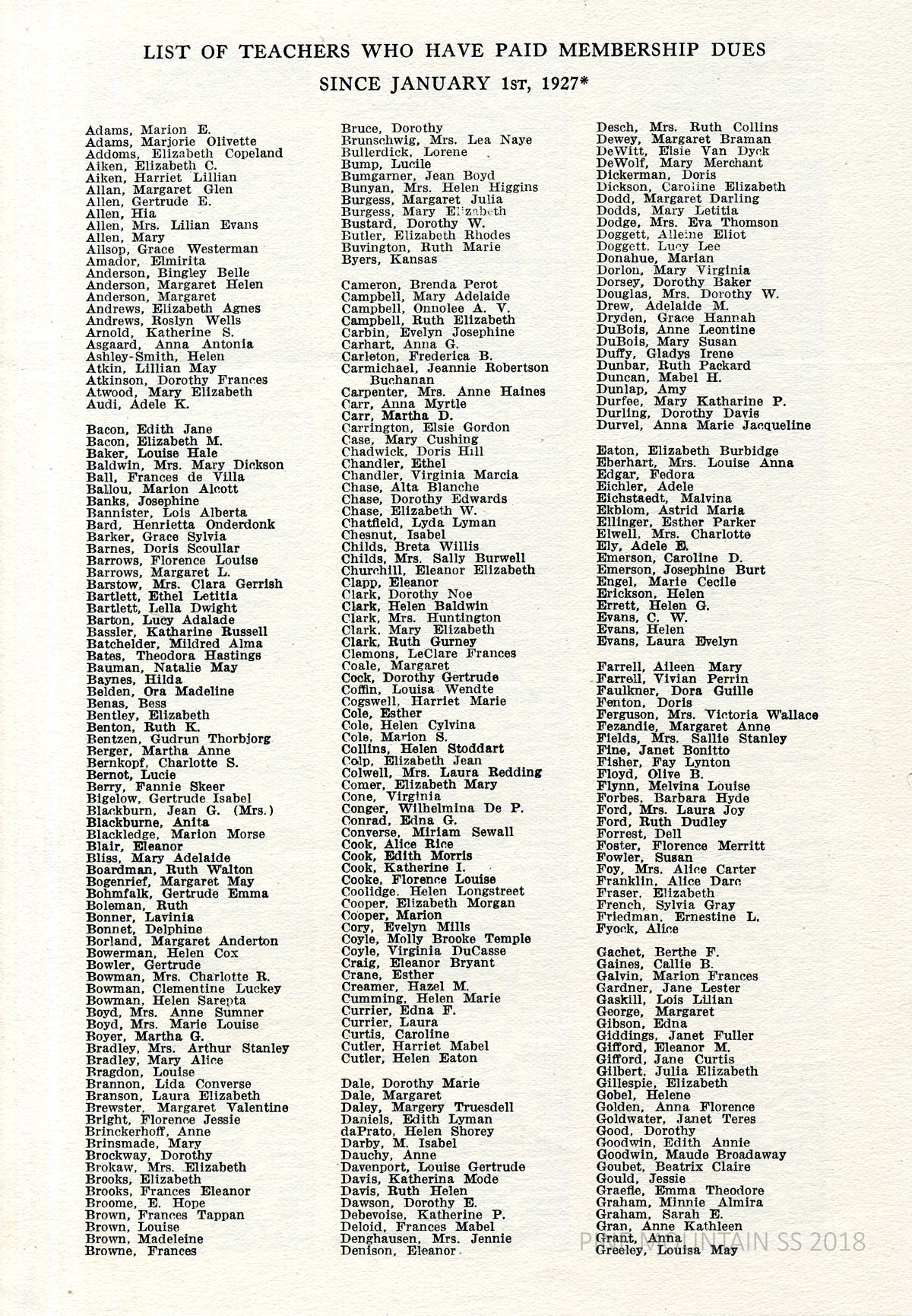 [melville_corr_036.jpg] “List of Teachers Who Have Paid Membership Dues Since January 1st, 1927” (A through Greeley).