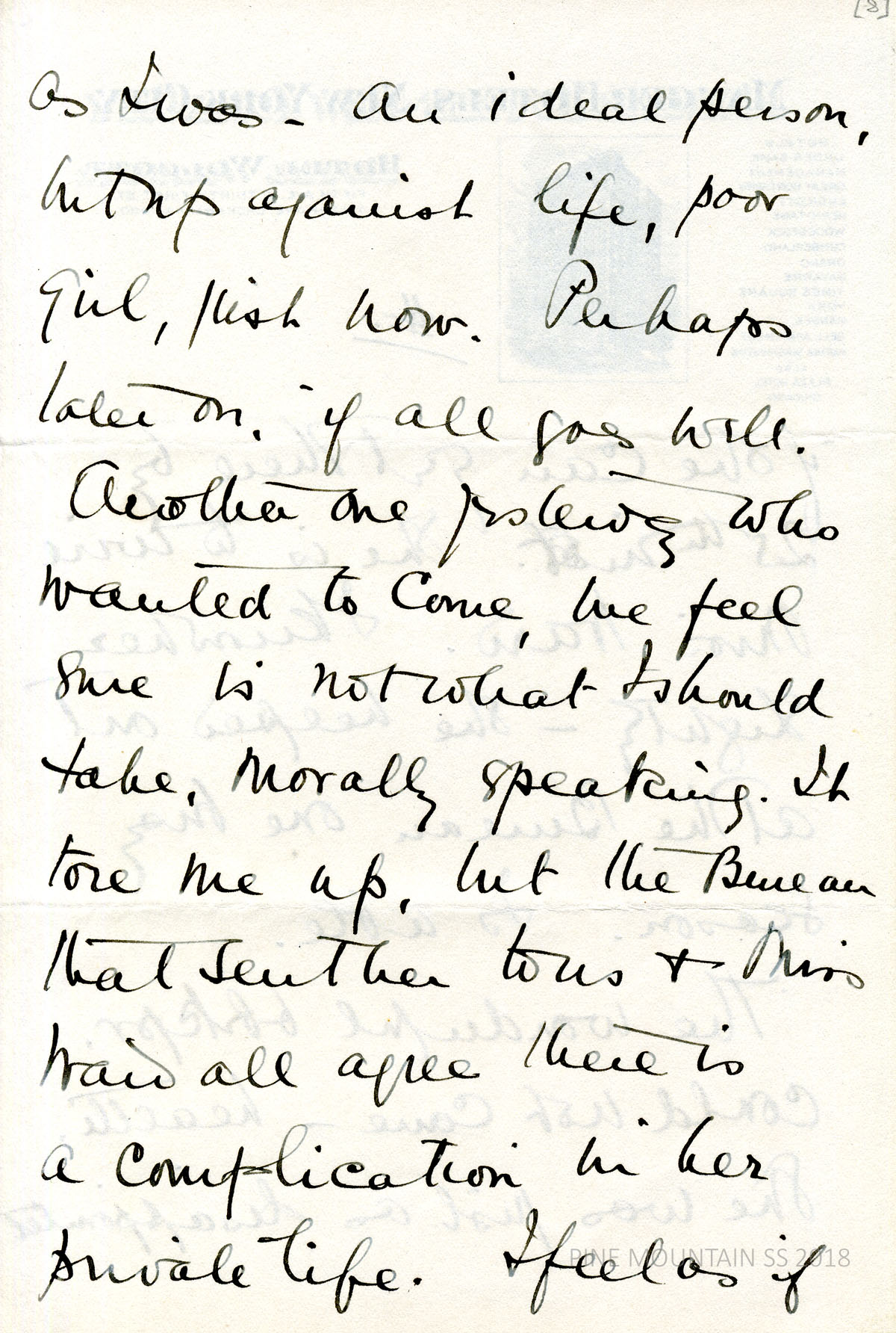[melville_corr_018.jpg] Unsigned to Melville in NYC, March 21, 1928. Asked if Melville’s office could supply a secretary for PMSS “to tide over any period of reorganization” and then perhaps go on as secretary. Will tell Miss Pettit about hiring Miss Mackey who should stay at PMSS for two months instead of one.