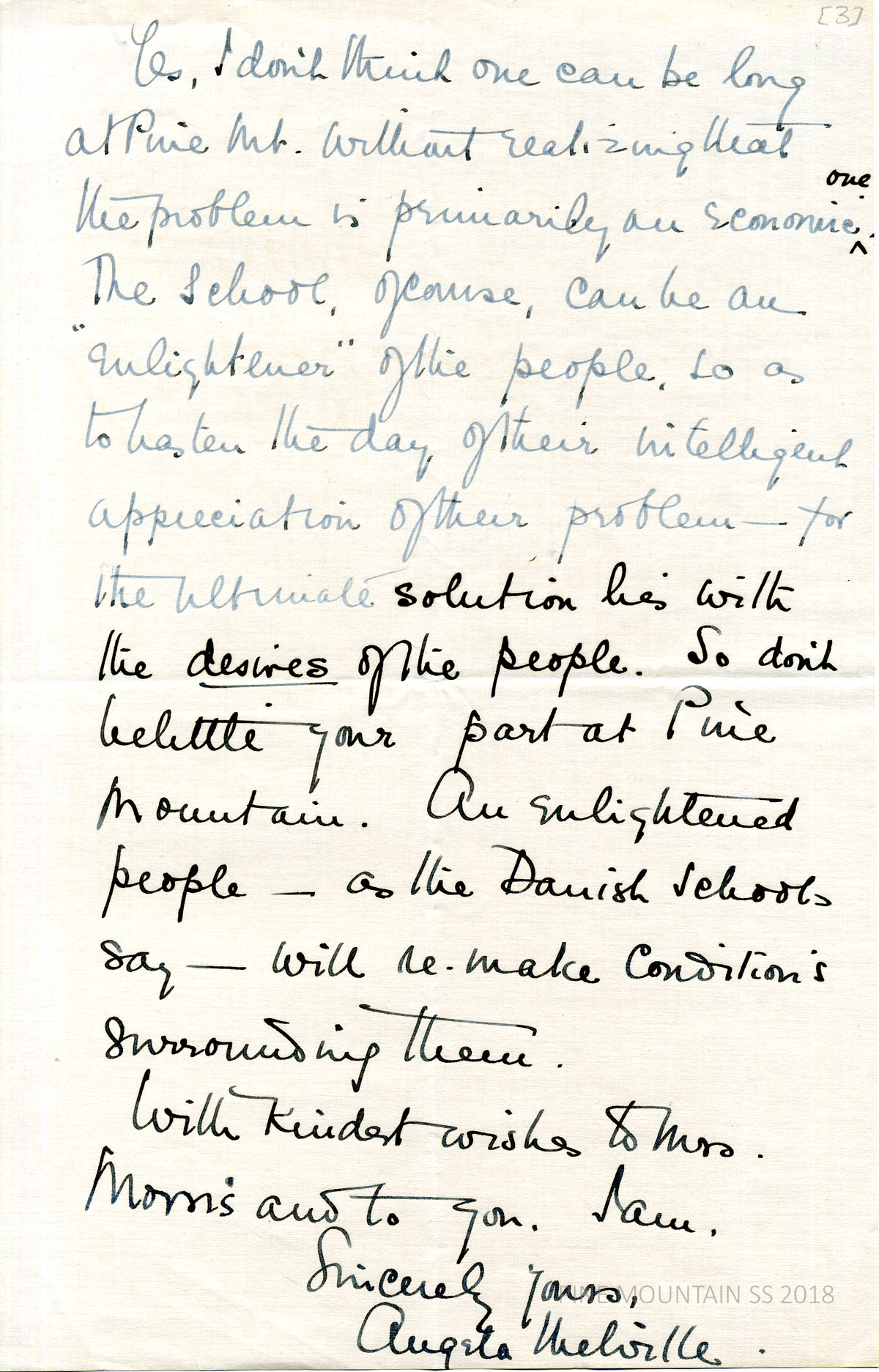 [melville_corr_078a.jpg] (page 2) Agrees with Morris that the problem at PMSS is “primarily an economic one… the ultimate solution lies with the desires of the people…an enlightened people…will re-make conditions surrounding them.”