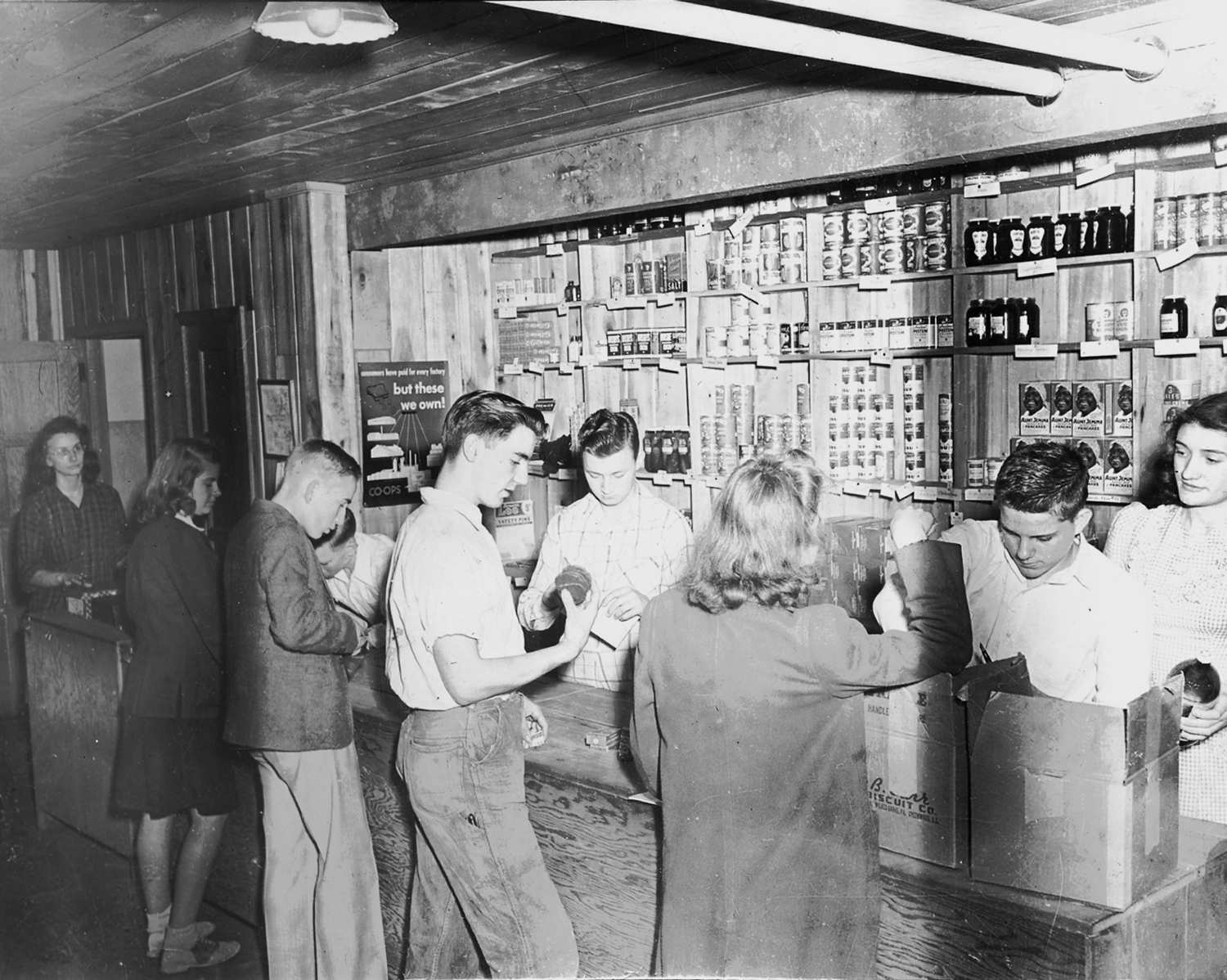 - PMSS Coop Store – Customers: Margaret Blair, Don Freeman, Owen Lewis. Clerks: Oma Jackson, Roy Crase, Harold Cox, Ida Mae Lewis, 1946. [nace_1_057b.jpg]