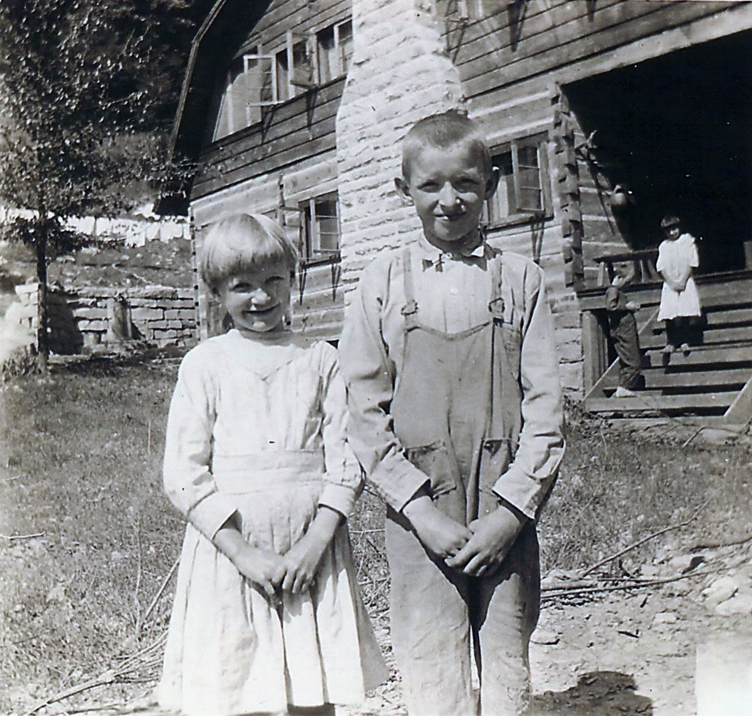 - Lewis Family children. Dosha and John Clyde at PMSS in front of Big Log house, c. 1914-1920.[duck_002.jpg]