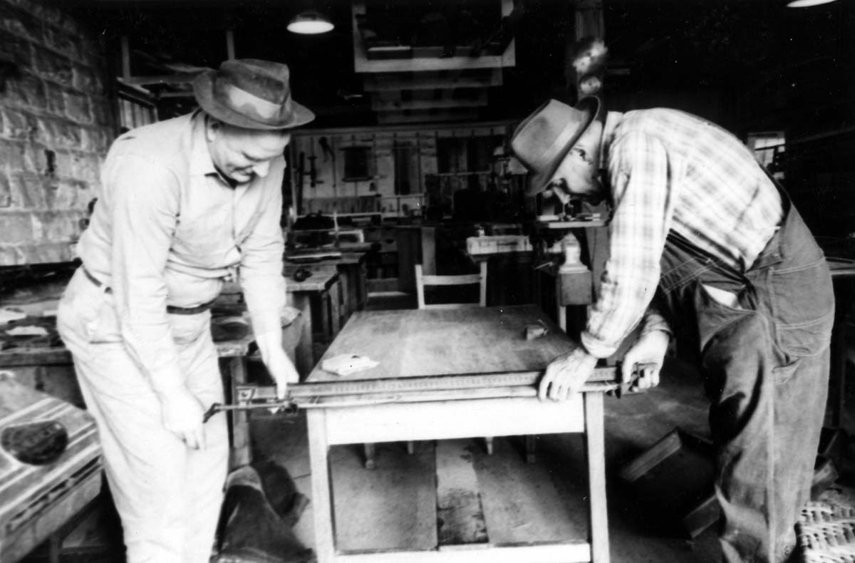 - Melva Lewis, Ruth Smith [Creech], Mr. Benjamin, John Paul Blanton – Office staff, October 1946. [nace_1_034b.jpg]