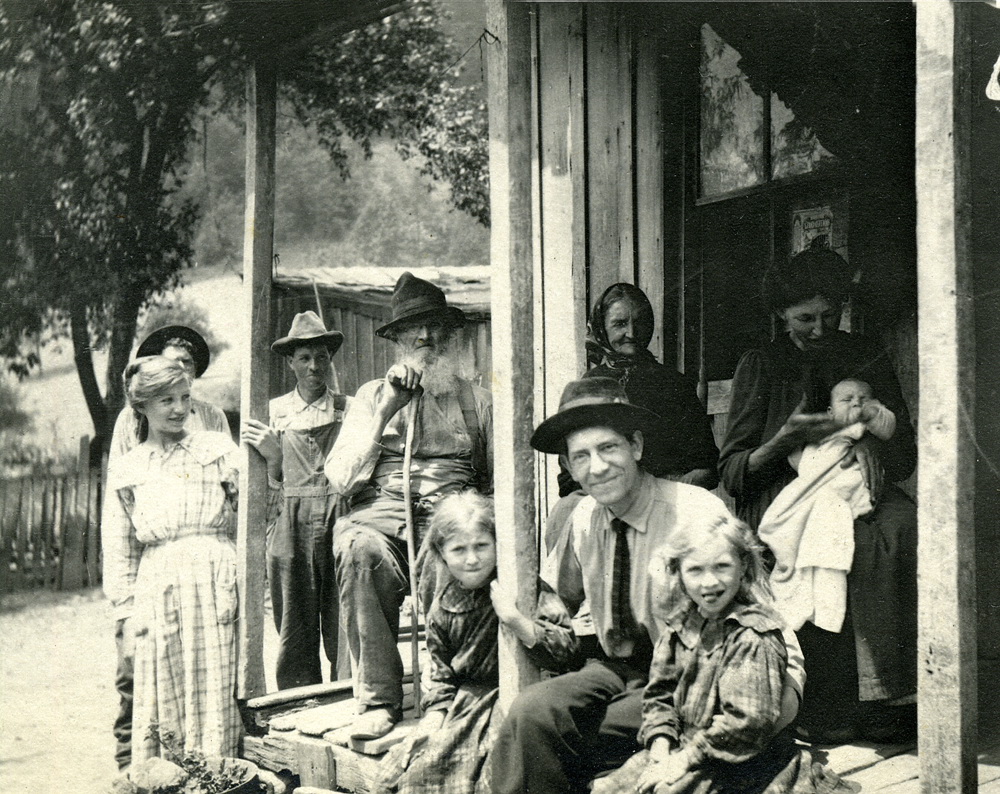 - 38 Friends & Neighbors: “Stacy Ellen Lewis and Uncle Alec” [Lewis] with ten family members on porch. [Vl_34_1110_mod.jpg]
