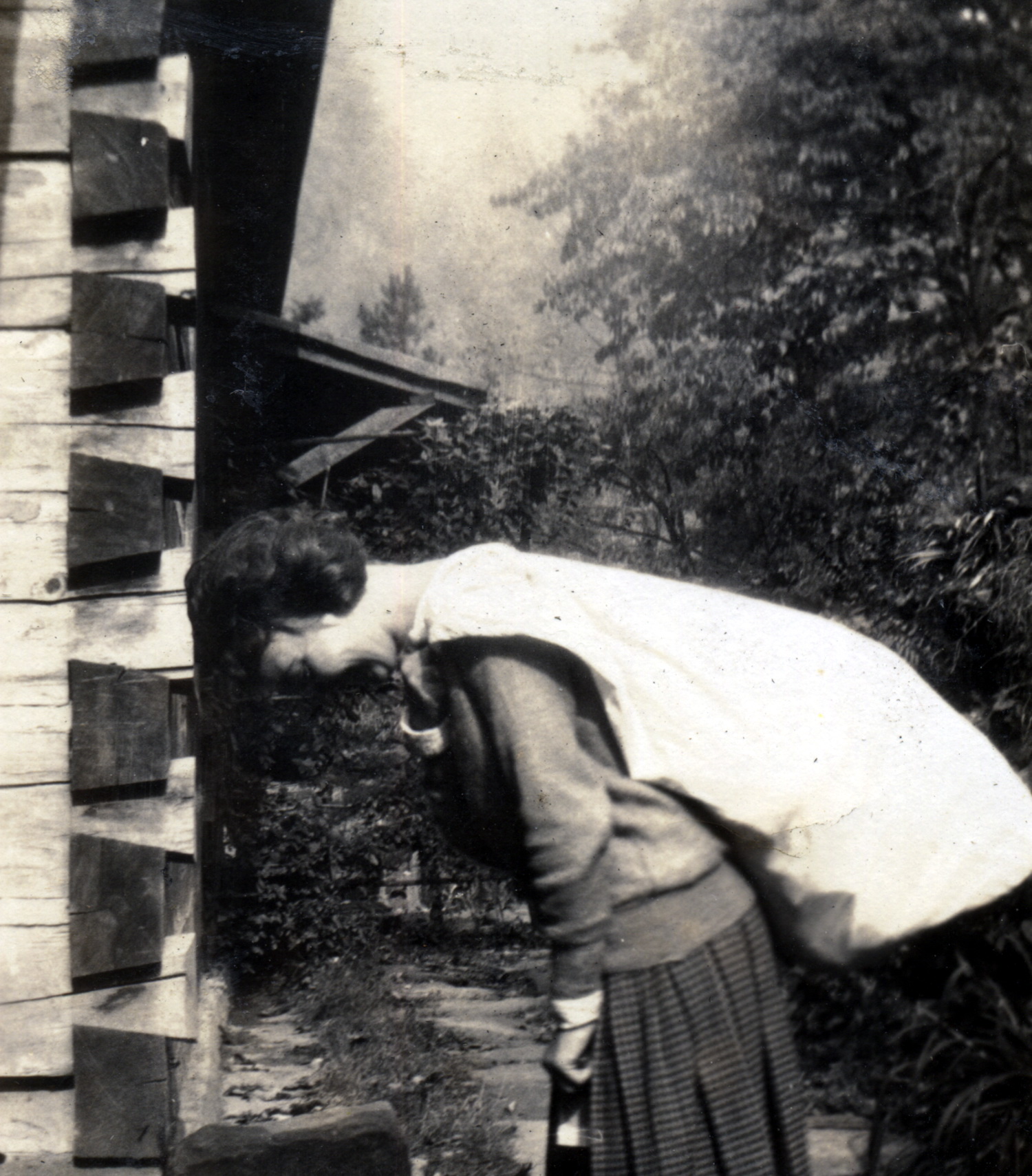 - Medical Settlement, Big Laurel. Aileene Lewis seated at the Well House at the settlement. [nesb_036_mod.jpg]