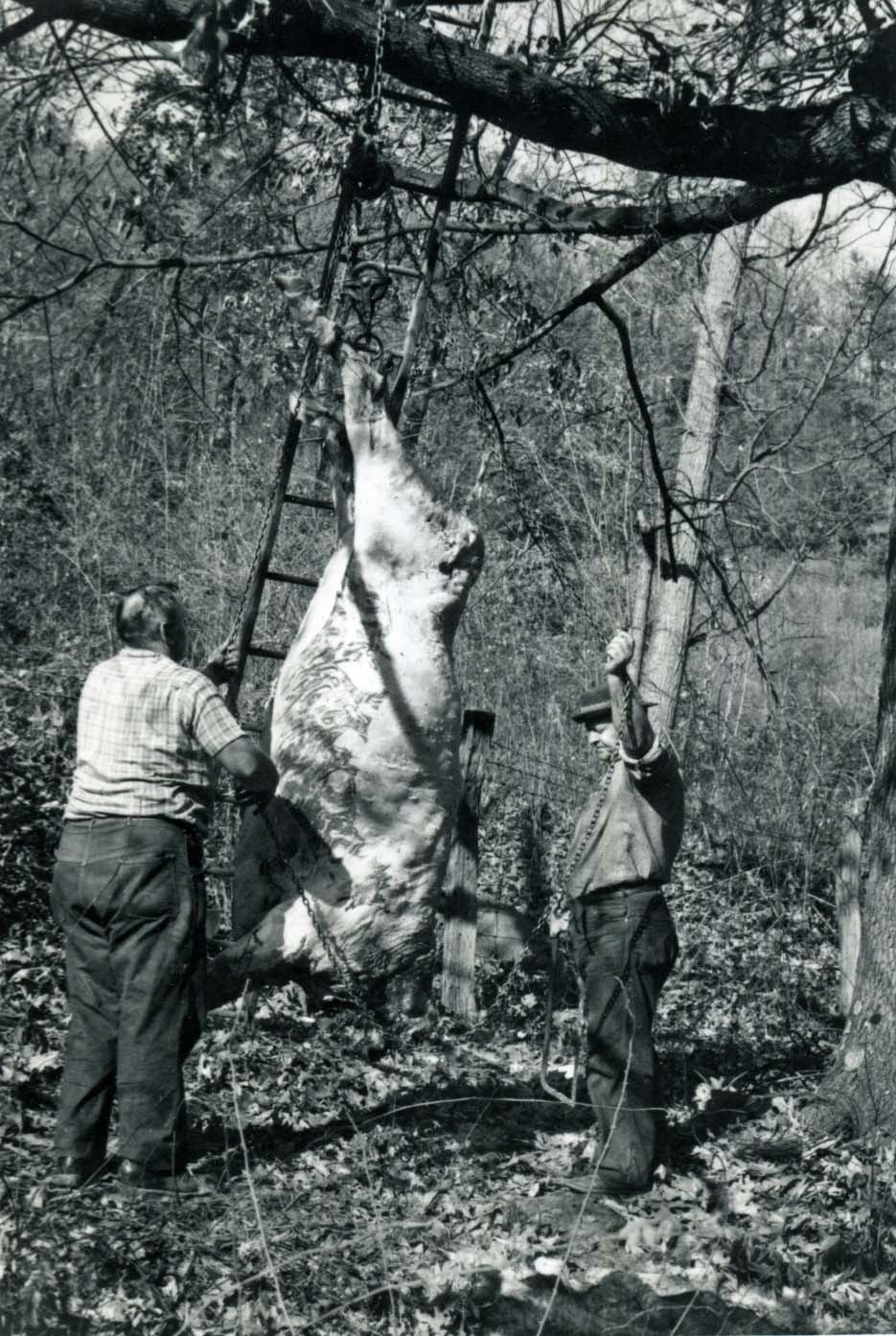 - Brit Wilder and Alvin Boggs butchering a steer. [VII_63_life_work_001-123.jpg]