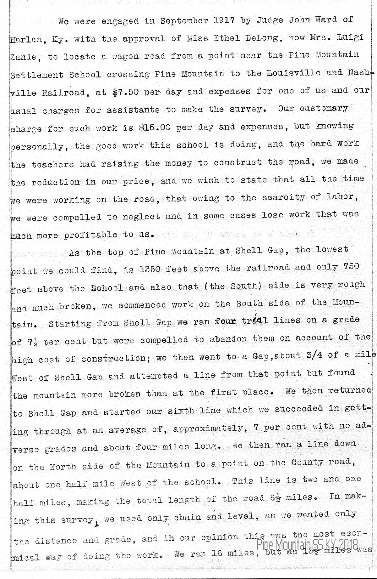 - Report of Fox & Peck Engineers, on the Pine Mountain Road, Harlan County Kentucky. p.2