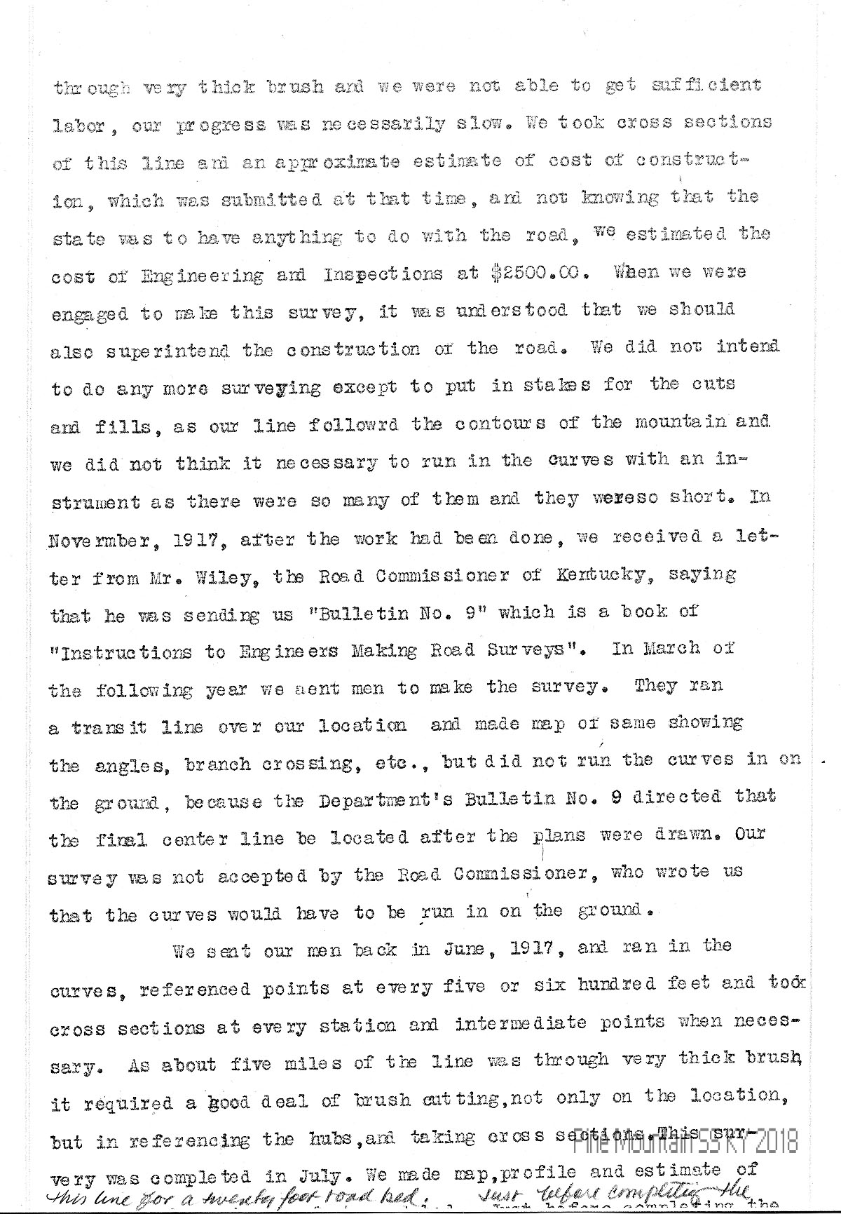 - Report of Fox & Peck Engineers, on the Pine Mountain Road, Harlan County Kentucky. p.3