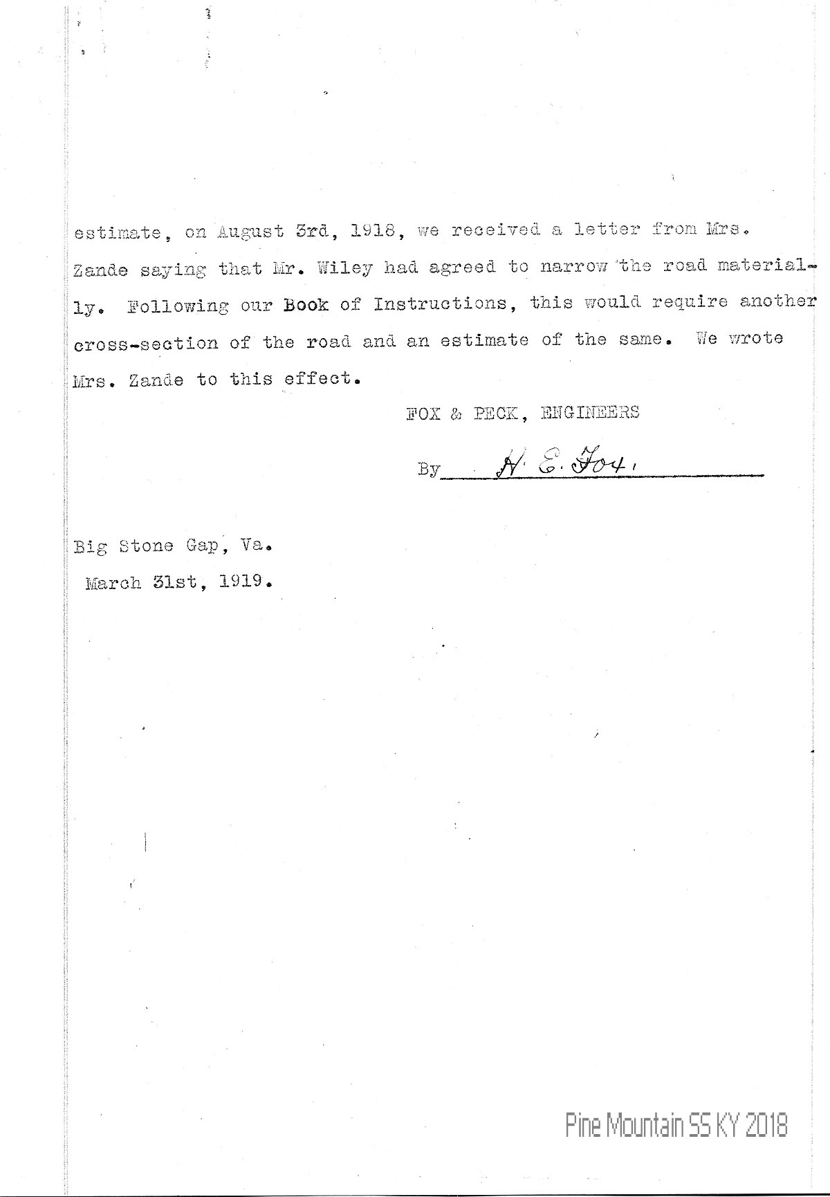 - Report of Fox & Peck Engineers, on the Pine Mountain Road, Harlan County Kentucky. p.1a