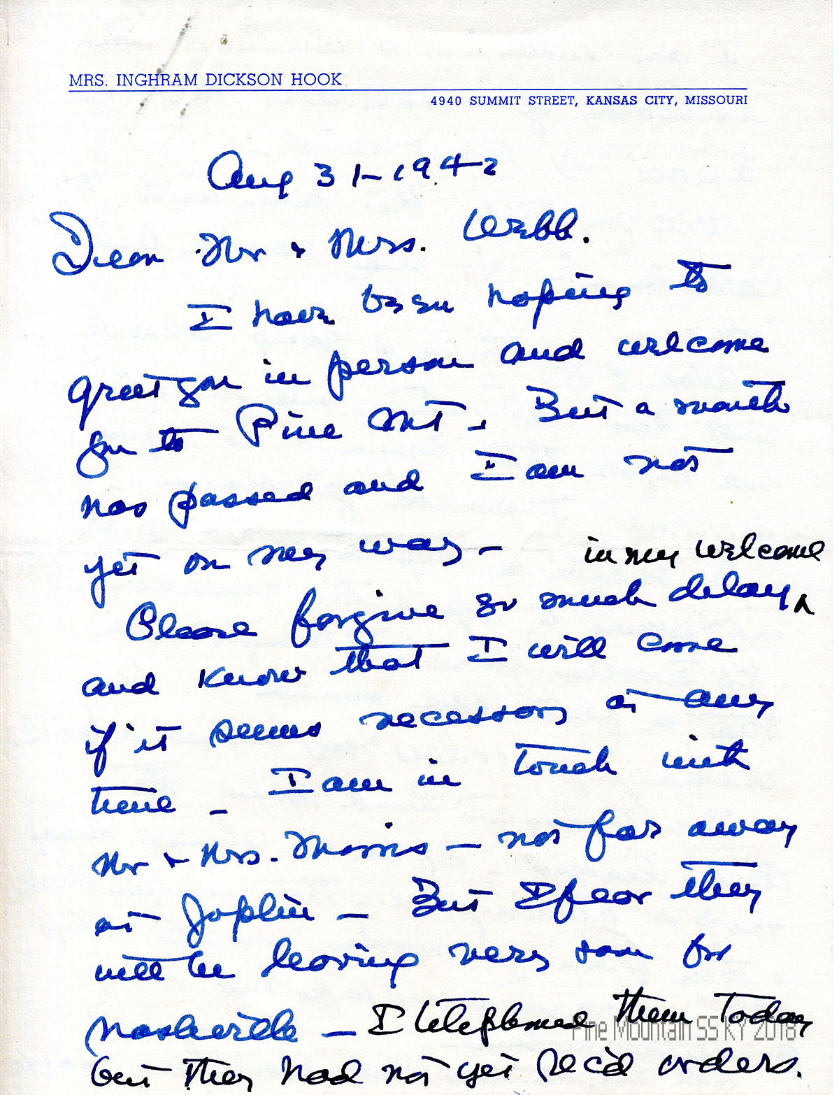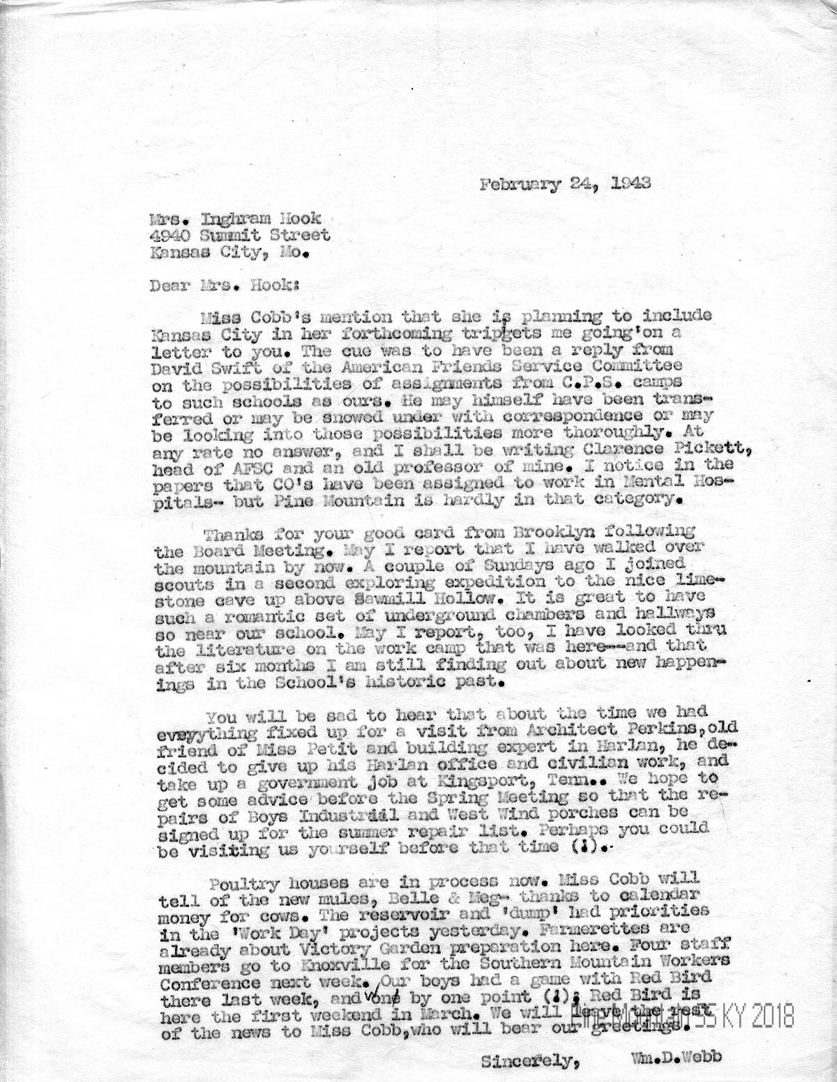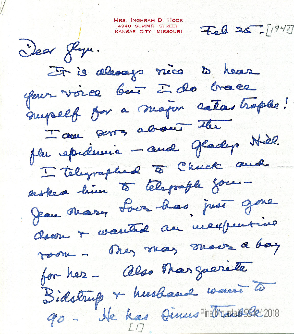 MARY ROCKWELL HOOK Correspondence 1942-43 Box 19: 3-14