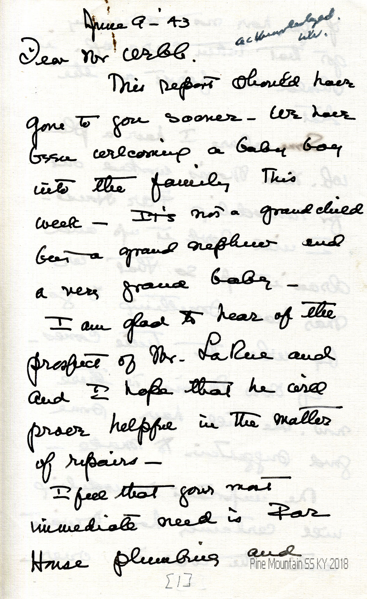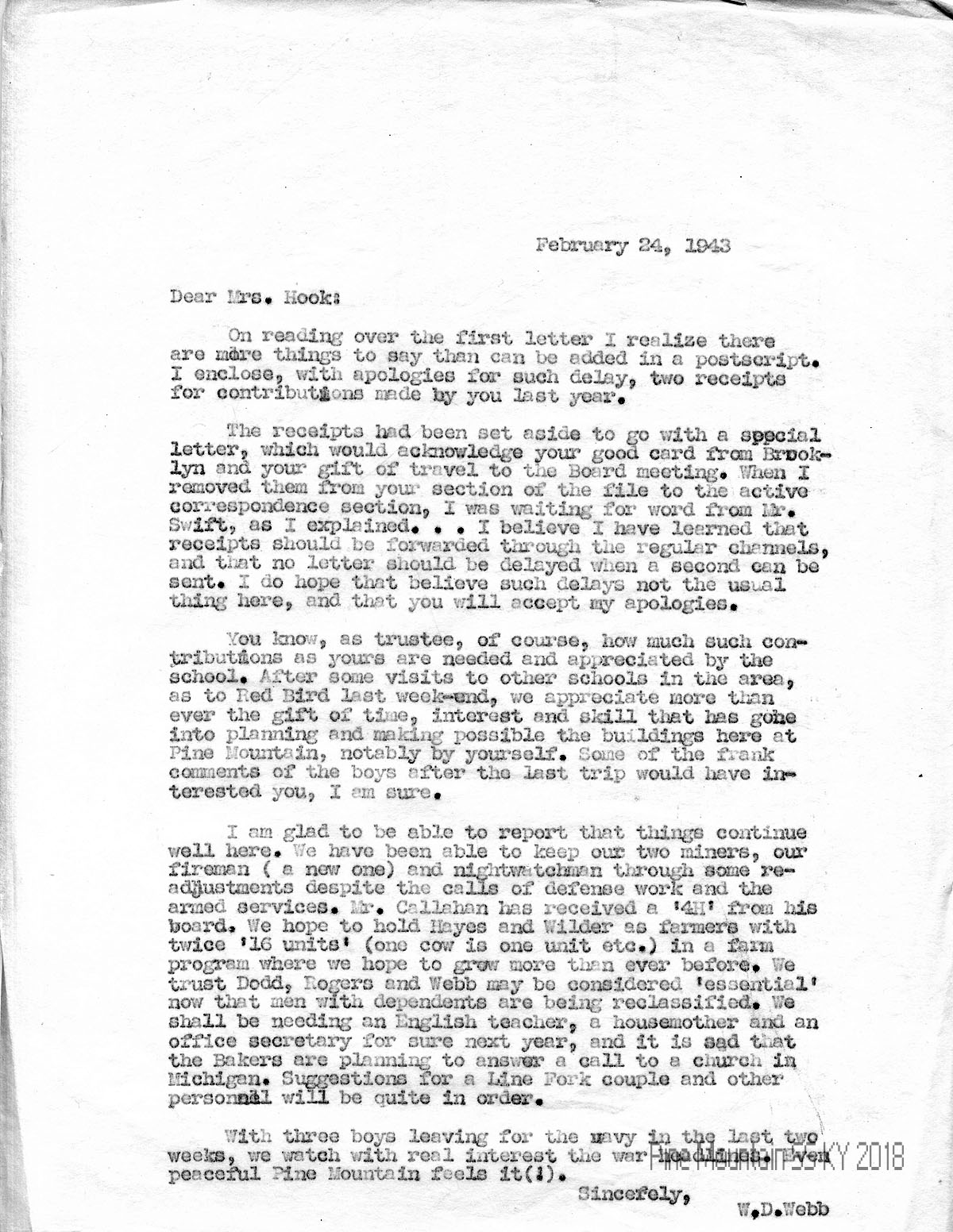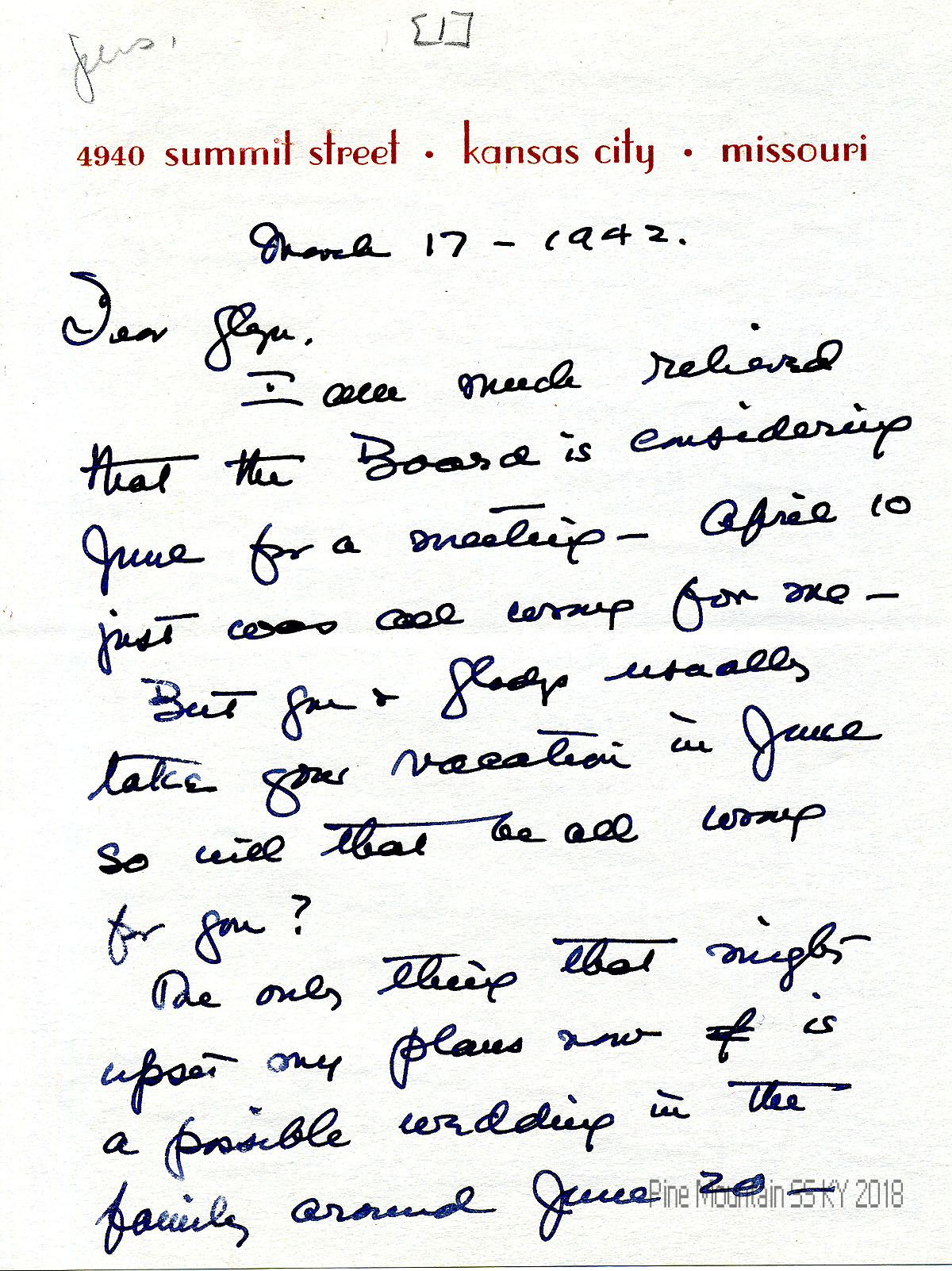 MARY ROCKWELL HOOK Correspondence 1942-43 Box 19: 3-14