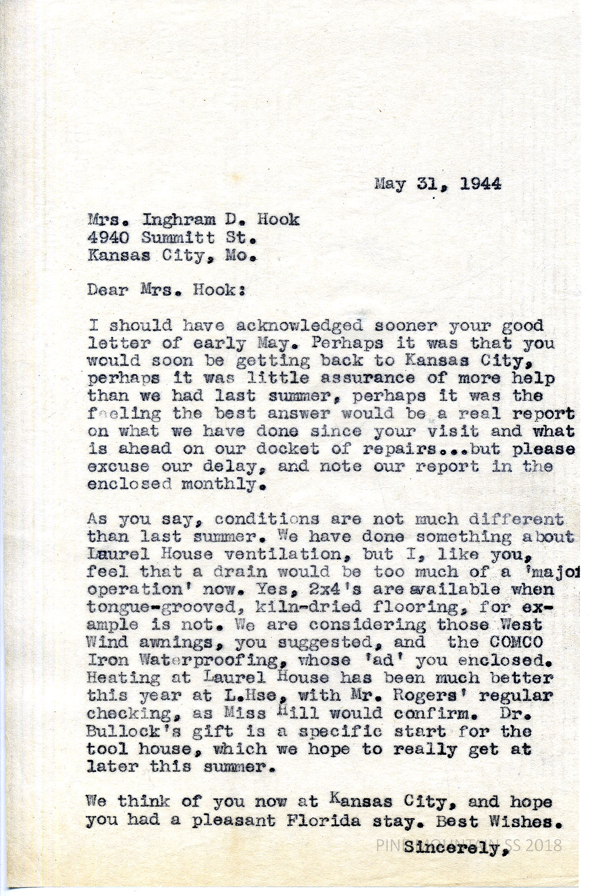 MARY ROCKWELL HOOK Correspondence 1944 Box 19: 3-27