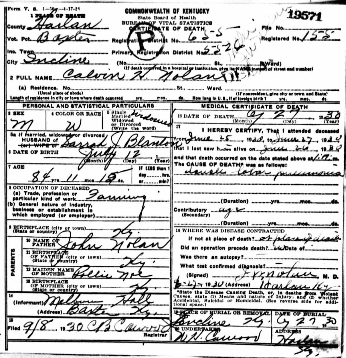 - Calvin Nolan (1846-1930). Death Certificate. [pmss_nolan_calvin_deathcert.jpg]